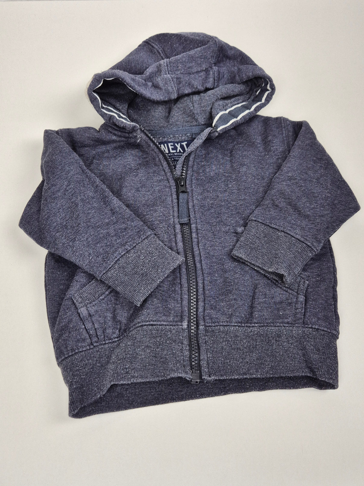 Klasická tmavě šedá mikina Next s kapucí je univerzální kousek, který se hodí ke všemu. Vyrobená z kvalitního, měkkého materiálu, který je příjemný na dotek a ideální pro každodenní nošení. Má praktický zip po celé délce a kapsy na drobnosti — perfektní na procházky, do školky i na doma. Díky neutrální barvě se hodí pro chlapečka i holčičku.