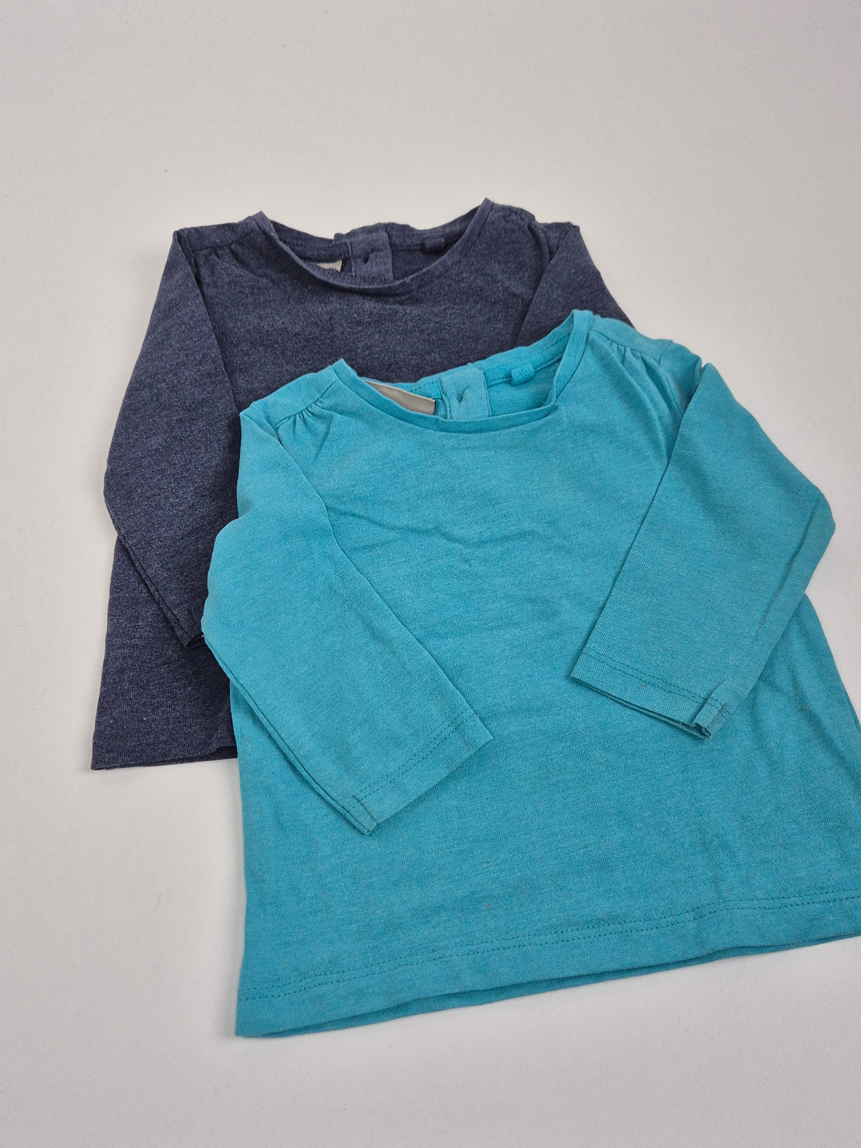 Praktická sada dvou jednobarevných triček s dlouhým rukávem v odstínech světle tyrkysové a tmavě modré. Měkká bavlna je příjemná k dětské pokožce a ideální na každodenní nošení – do kočárku, na doma i do školky. Jednoduchý střih se snadno kombinuje s jakýmkoli outfitem a hodí se pro holčičku i chlapečka.
