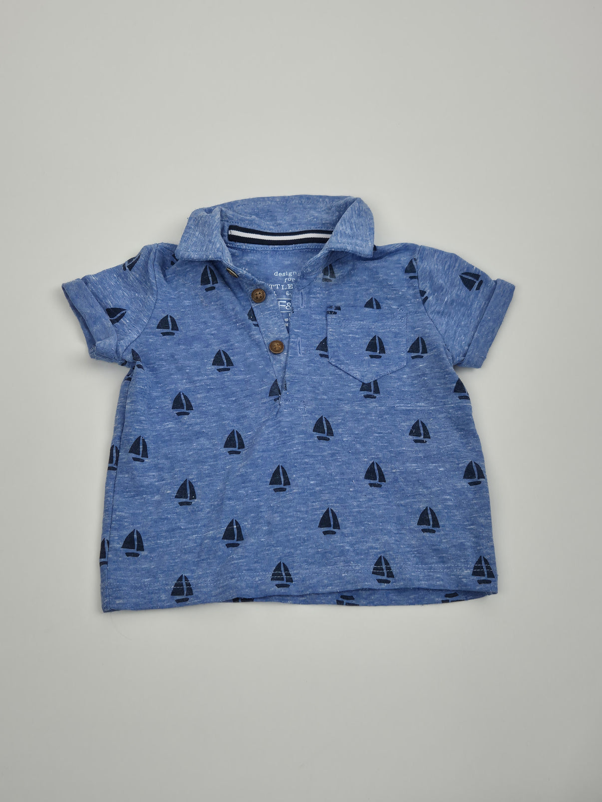 Letní chlapecká košile značky F&F ve velikosti 62 je ideální volbou pro malé elegány. Světle modrý odstín s jemným melírováním je doplněn tmavě modrým celopotiskem plachetnic, který působí svěže a...