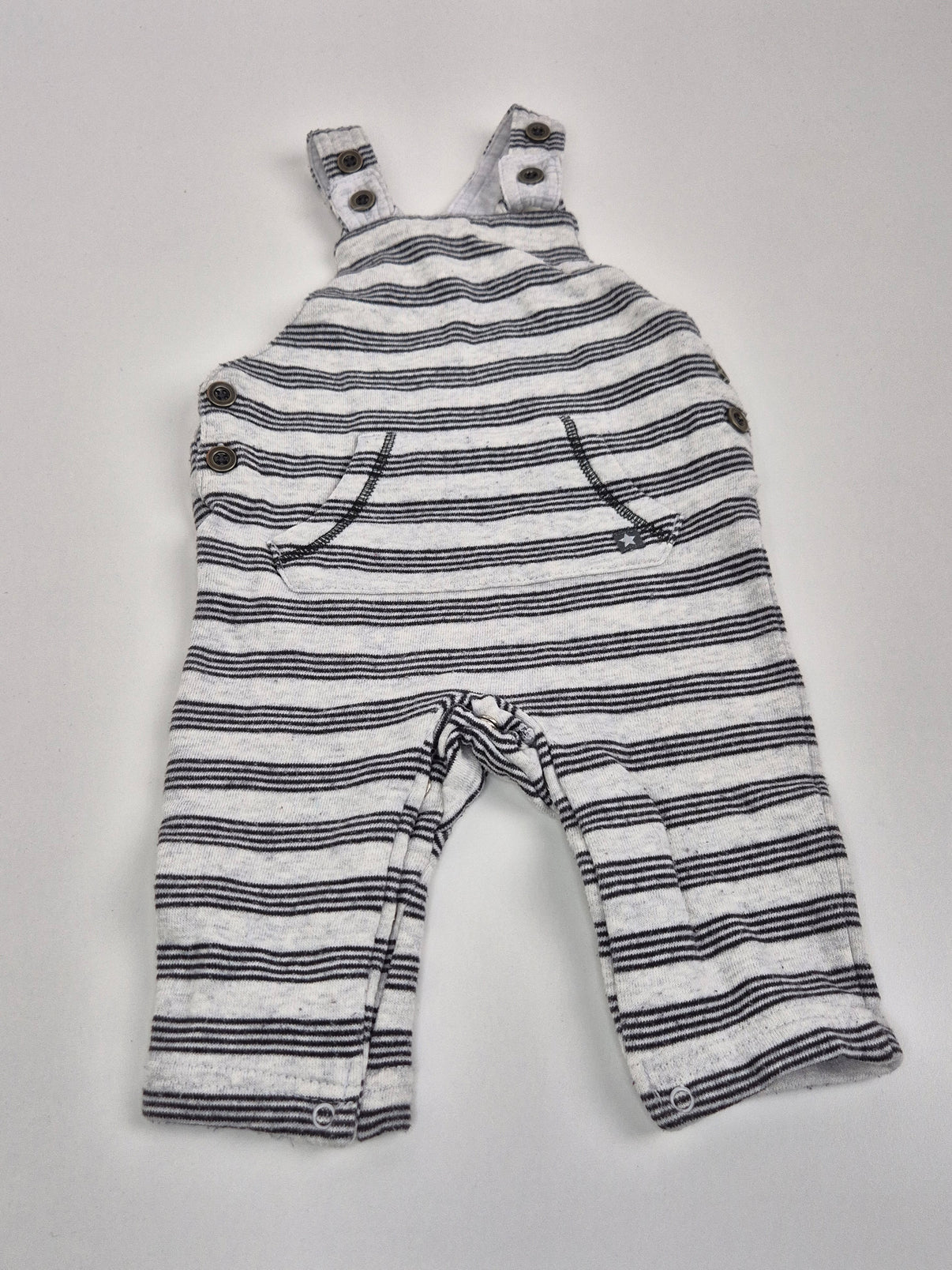 Měkké laclové tepláky F&F ve velikosti 68, ideální na každodenní nošení i hraní. Pruhovaný vzor v šedých tónech je univerzální a hodí se pro kluka i holčičku. Ramínka na knoflíky umožňují přizpůsobení délky a praktická klokanková kapsa dodává roztomilý detail. Zapínání na druky mezi nožičkami usnadňuje přebalování.