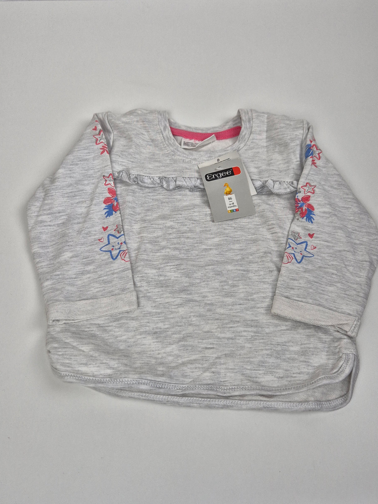Pohodlná mikina Ergee ve světle šedém odstínu s jemným melírem je ideální na běžné nošení i do školky. Na rukávech má krásné barevné květinové výšivky, které dodávají jemný a veselý vzhled. Horní část zdobí decentní volánek, který z mikiny dělá roztomilý kousek pro holčičku. Materiál je měkký a příjemný na dotek, takže se v ní bude malá slečna cítit skvěle po celý den.