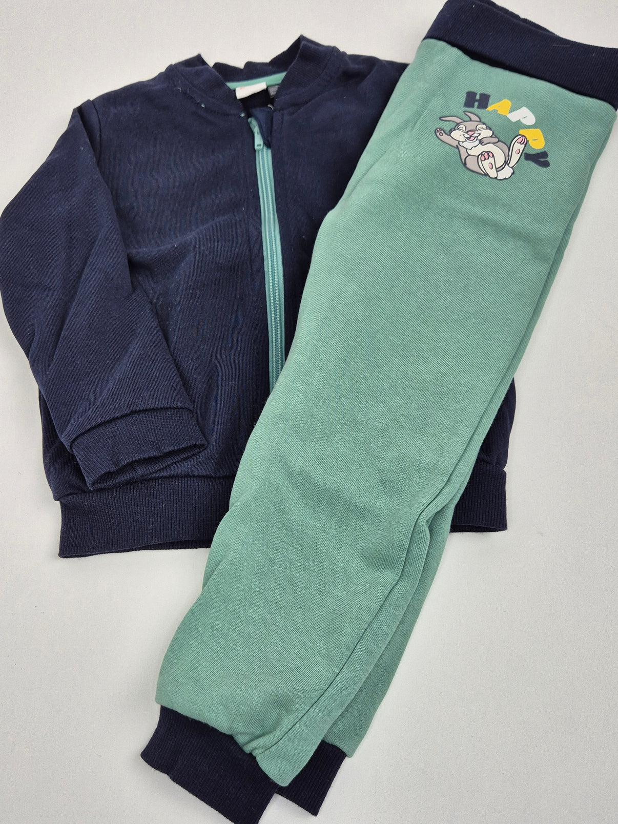 Roztomilá tepláková souprava Dupík z Lidlu v hravém stylu je ideální na každý den – do školky, na doma i na ven. Mikina v tmavě modré barvě má pohodlný střih na zip a zdobí ji veselý motiv zajíčka Dupíka. Tepláčky v jemné mechově zelené mají pružný pas, pohodlný střih a sladěný potisk zajíčka s nápisem HAPPY. Příjemný, měkký bavlněný materiál zajistí maximální pohodlí.