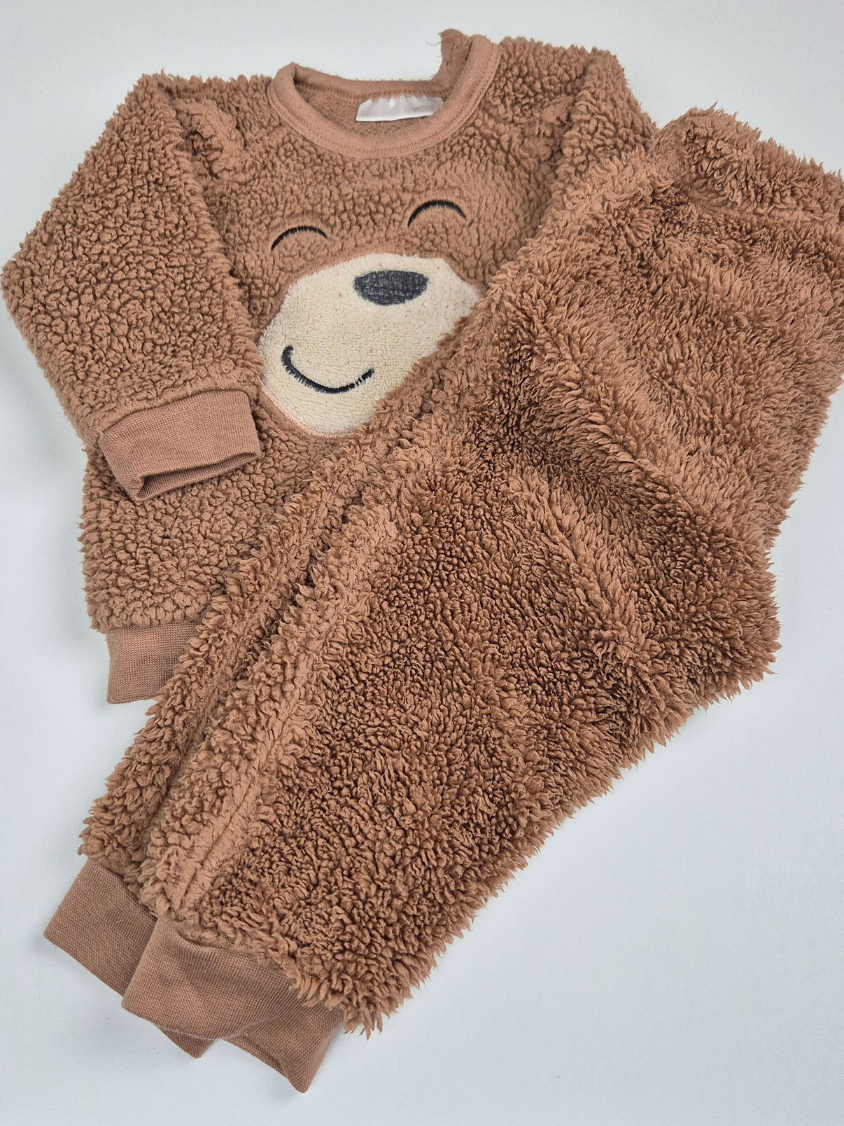 Měkoučká tepláková souprava Ergee v hřejivém medově hnědém odstínu potěší všechny malé dobrodruhy i mazlíky. Hebký chlupatý materiál je ideální na chladnější dny, na doma i do kočárku. Mikina zdobená úsměvým medvídkem působí hravě a příjemně, kalhoty mají pružné lemy pro pohodlné nošení. Skvělý unisex komplet, který zahřeje a zároveň nechá děťátko volně se hýbat.