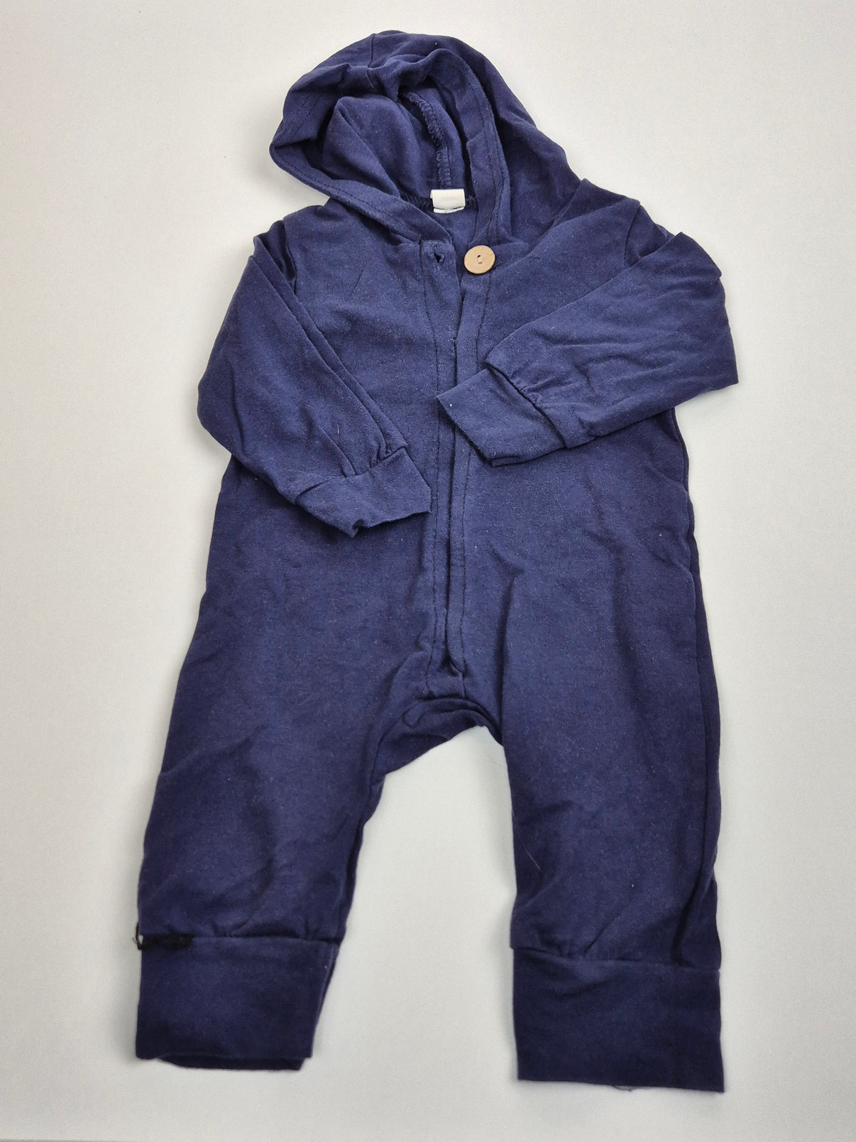 Jednoduchý a praktický kojenecký overal v tmavě modré barvě, ideální na chladnější dny. Celoplošné jednobarevné provedení působí nadčasově a snadno se kombinuje s dalšími kousky. Overal má kapuci a zapínání na zip po celé délce, doplněné jedním knoflíčkem u krku, což usnadňuje oblékání i svlékání. Ohrnovací nohavice přidávají na praktičnosti a pohodlí.