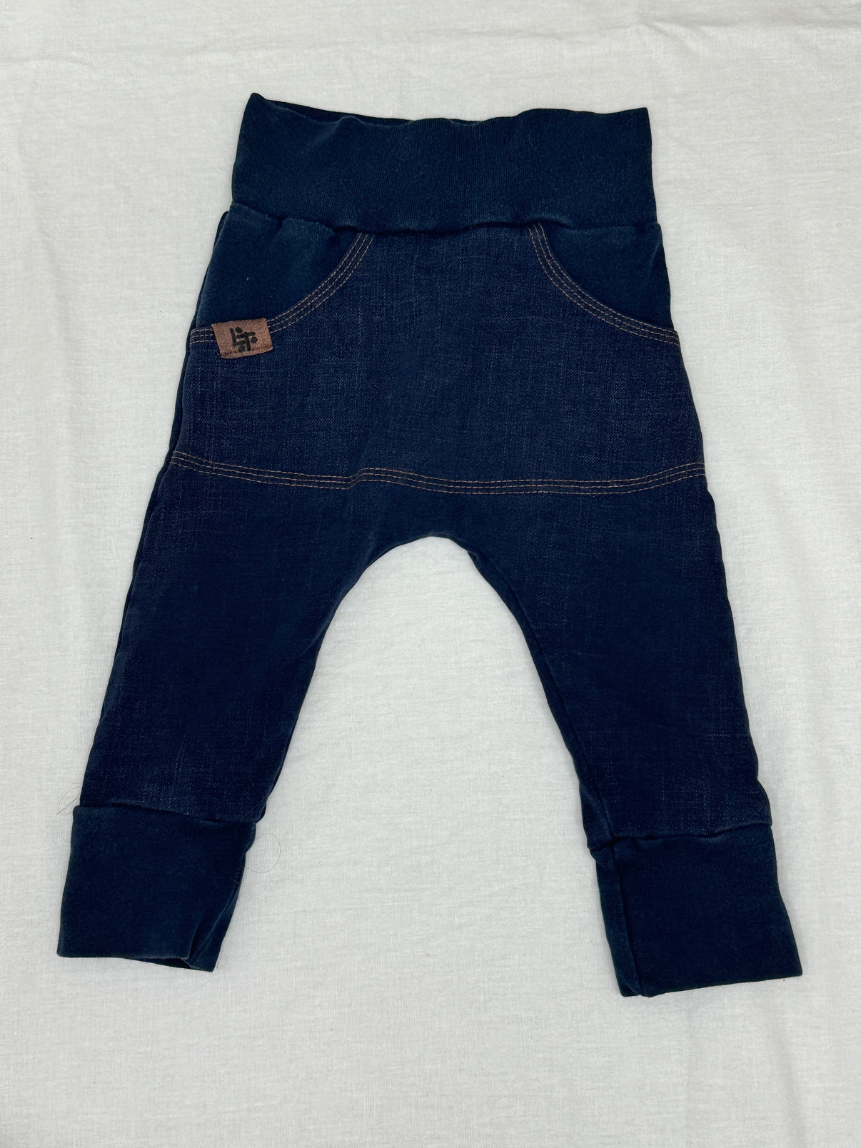 Pohodlné dětské kalhoty značky LittleThings s nižším sedem ve velikosti 6-9 kg jsou skvělou volbou pro miminka. Kalhoty jsou tmavě modré, mají stylové prošívání a široký elastický pas, který zajistí pohodlí při nošení. Díky volnějšímu střihu jsou ideální pro volný pohyb a dobrodružství malých dětí.
