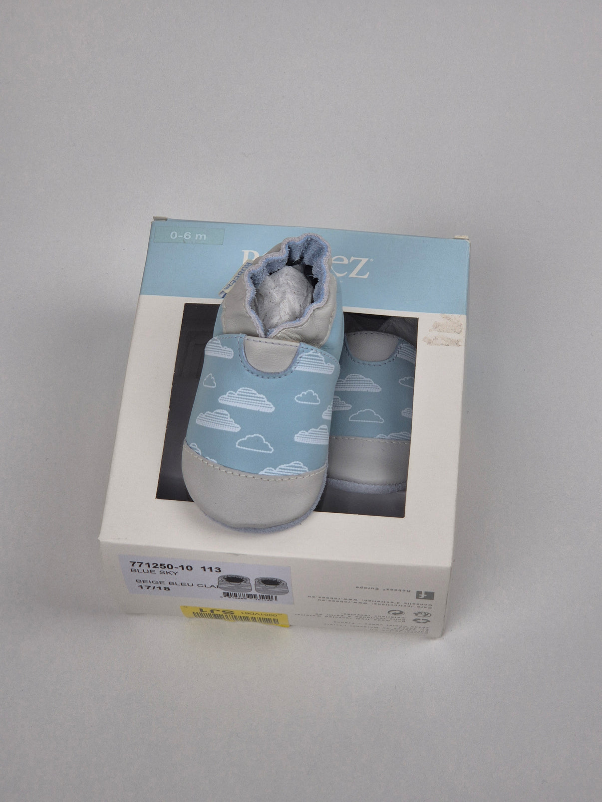 Roztomilé světle modré kožené capáčky Robeez s motivem bílých obláčků jsou ideální volbou pro nejmenší miminka. Měkká podrážka poskytuje maximální pohodlí i volnost pohybu a je tak perfektní pro první měsíce života. Capáčky jsou vhodné pro chlapečky i holčičky – v balení velikost 17/18 (0–6 měsíců). Skvělý doplněk doma i na cesty, který díky pružnému lemu dobře drží na nožičce.