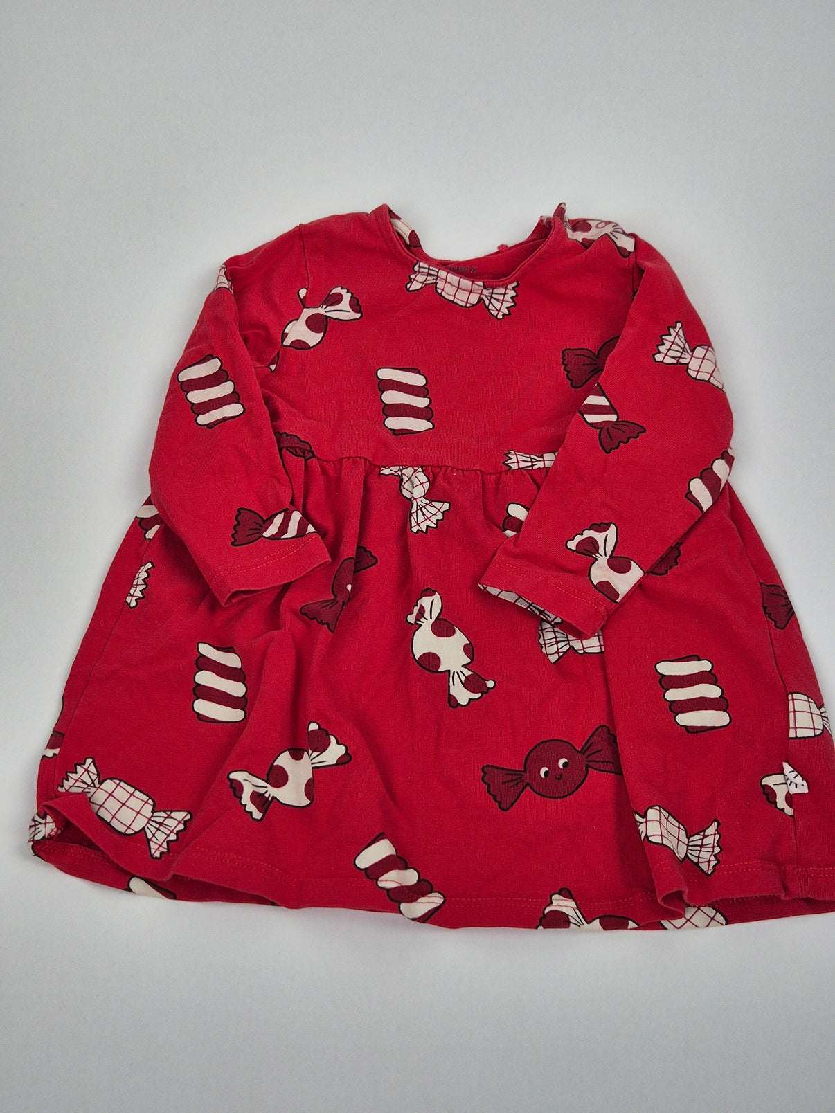 Roztomilé šaty od značky Lindex v sytě červené barvě se sladkým potiskem bonbonků jsou jako stvořené pro malé parádnice. Příjemný bavlněný materiál a pohodlný střih s dlouhým rukávem zaručí komfort po celý den – ať už doma, ve školce nebo na návštěvě. Ideální kousek pro holčičky, které milují barvy a hravé motivy.