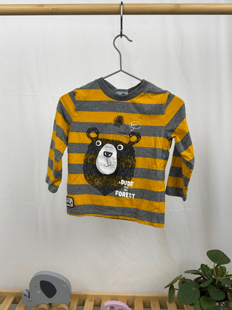 Veselé tričko s dlouhým rukávem značky Boboli ve velikosti 92 je ideální pro malé dobrodruhy. Pruhovaný design v šedé a žluté barvě doplňuje zábavný motiv medvěda s originálním detailním potiskem a nápisem "A Dude from the Forest". Tričko je vyrobené z příjemného materiálu, který zajišťuje pohodlí během celodenního nošení. Perfektní volba pro školku, hřiště nebo rodinné výlety, kdy chcete spojit styl a praktičnost. Skvělé na kombinaci s džíny nebo tepláky!