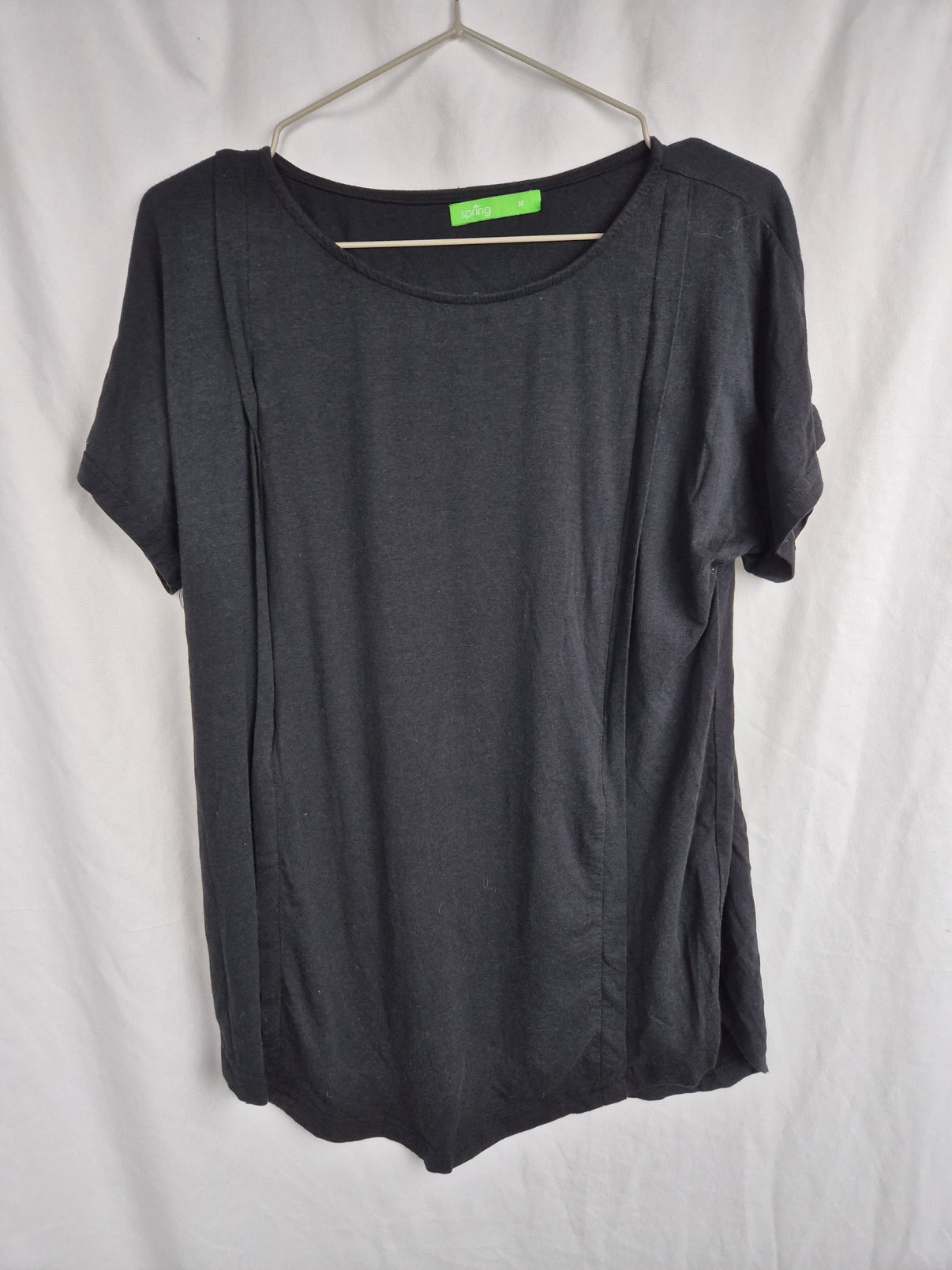 Jednoduché a pohodlné těhotenské a kojící tričko Spring ve velikosti M v univerzální černé barvě. Lehký a splývavý materiál krásně padá přes rostoucí bříško a díky skrytým zipům na kojení...