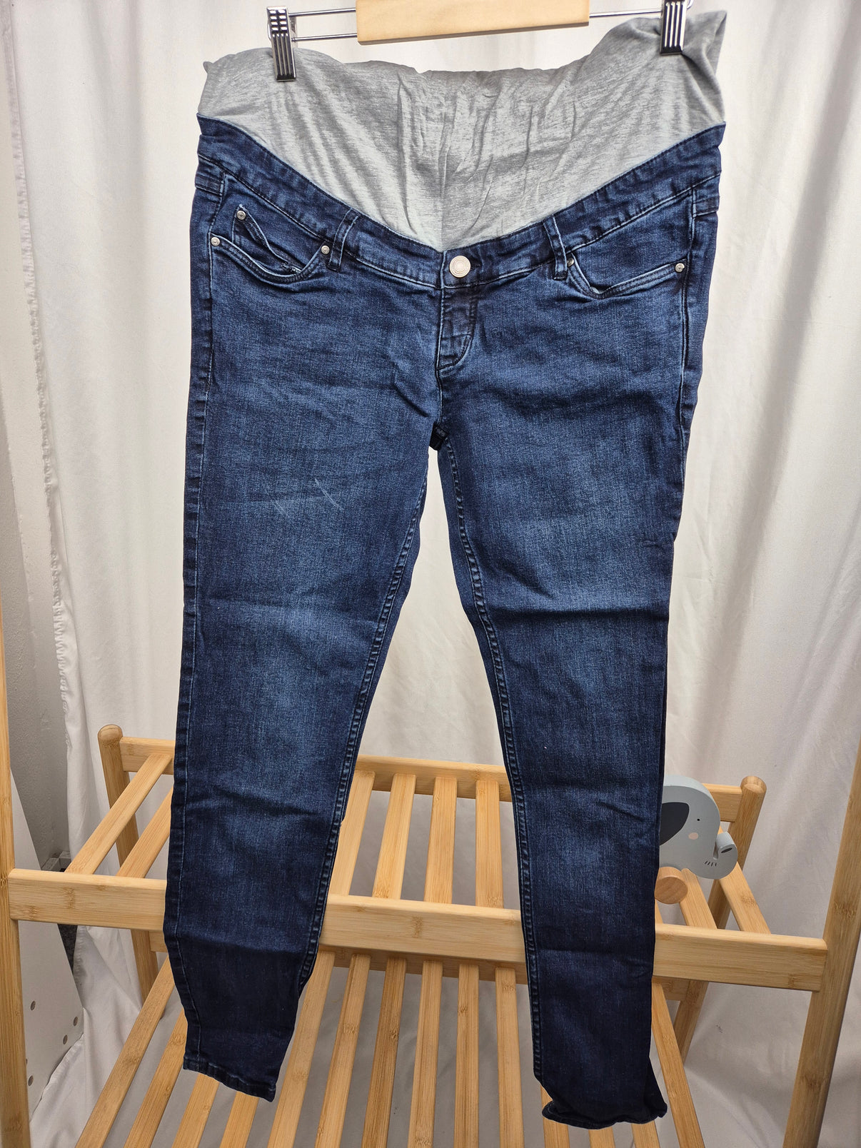 Tmavě modré těhotenské džíny Esmara ve střihu Super Skinny Fit ve velikosti 42 – pohodlné, pružné a ideální na každodenní nošení v těhotenství. Mají moderní úzký střih, který pěkně vytvaruje nohy, a široký měkký těhotenský pás, který se krásně přizpůsobí rostoucímu bříšku a nikde netlačí.