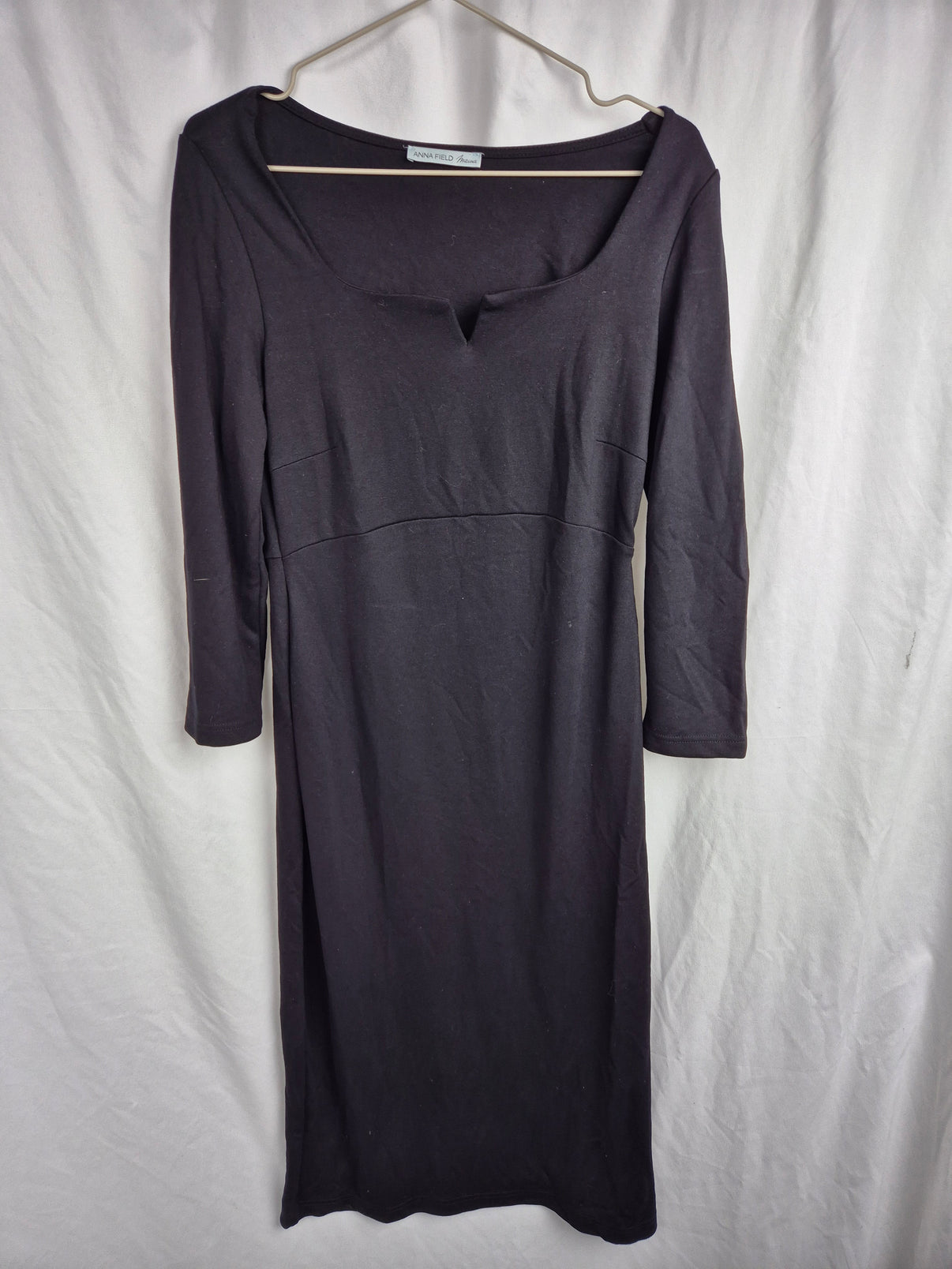 Elegantní těhotenské šaty Anna Field ve velikosti M v univerzální černé barvě – jednoduché, ale velmi ženské. Měkký a příjemně pružný materiál krásně obepíná postavu a přizpůsobí se rostoucímu bříšku. Výstřih s jemným zářezem dodává šatům originální detail a delší střih je ideální jak na běžné nošení, tak na pracovní schůzky či společenské příležitosti. Skvělý minimalistický kousek, který se snadno kombinuje.