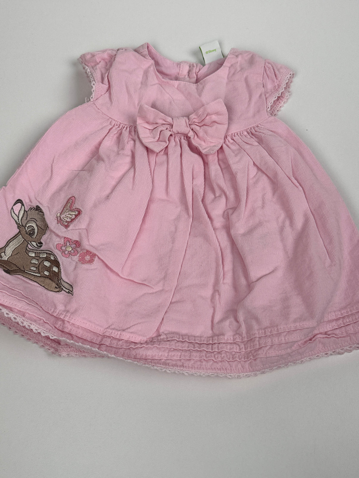 Roztomilé růžové šaty s jemnou výšivkou Bambi z kolekce Disney by Matalan potěší každou malou princeznu. Šaty mají krátké rukávky s krajkovým lemem, ozdobnou mašli na hrudi a lehce řasenou sukýnku pro pohodlné nošení. Ideální na teplejší dny, rodinné oslavy i focení. Příjemný bavlněný materiál zajistí pohodlí po celý den.