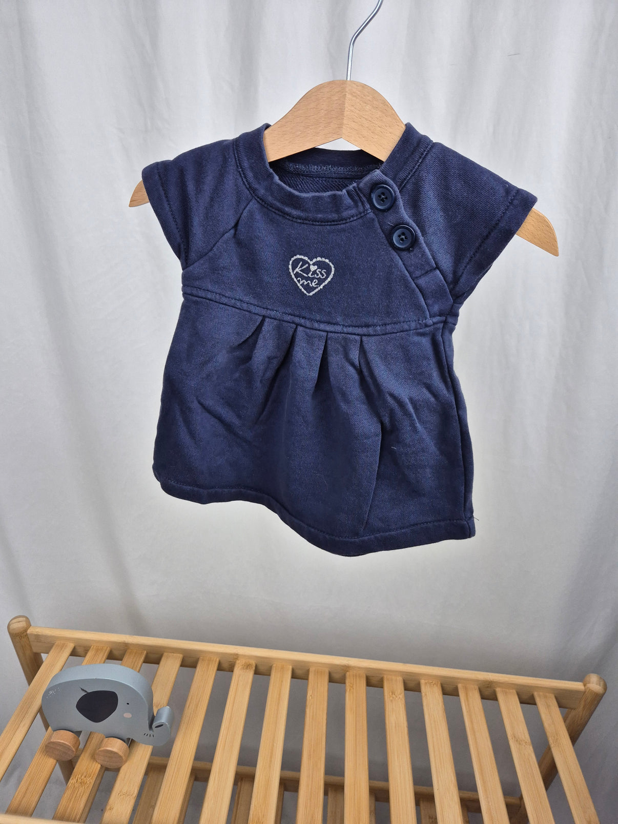 Tmavě modré šatičky CycleBand ve velikosti 62 jsou roztomilým a pohodlným kouskem pro nejmenší holčičky. Díky měkkému, teplejšímu materiálu jsou ideální na chladnější dny, ať už doma nebo venku pod svetřík. Asymetrické zapínání na dva knoflíčky u ramene usnadňuje oblékání, zatímco na hrudi nechybí něžná výšivka s nápisem „Kiss me“ uvnitř srdíčka. Jednoduchý, ale stylový design zajišťuje snadnou kombinovatelnost s legínkami či punčochami. Praktické, pohodlné a s nádechem něžnosti – ideální volba pro malé princezny.