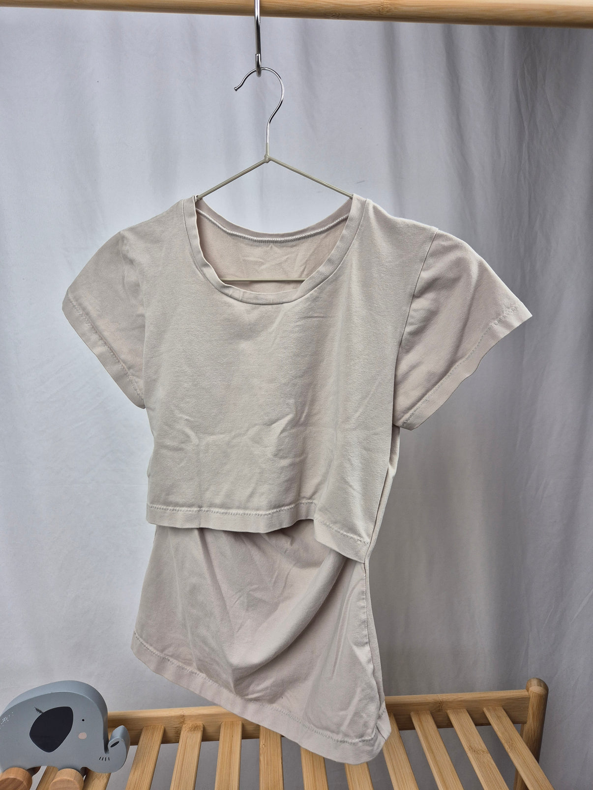 Lehké těhotenské a kojicí tričko v jemném béžovém odstínu je ideálním parťákem pro pohodlí během celého dne. Díky překládanému přednímu dílu umožňuje snadný a diskrétní přístup při kojení, zatímco volnější střih poskytuje dostatek místa pro rostoucí bříško. Měkký a prodyšný materiál je příjemný na dotek a vhodný jak na doma, tak na běžné nošení. Jednoduchý a nadčasový design se snadno kombinuje s dalšími kousky v šatníku.