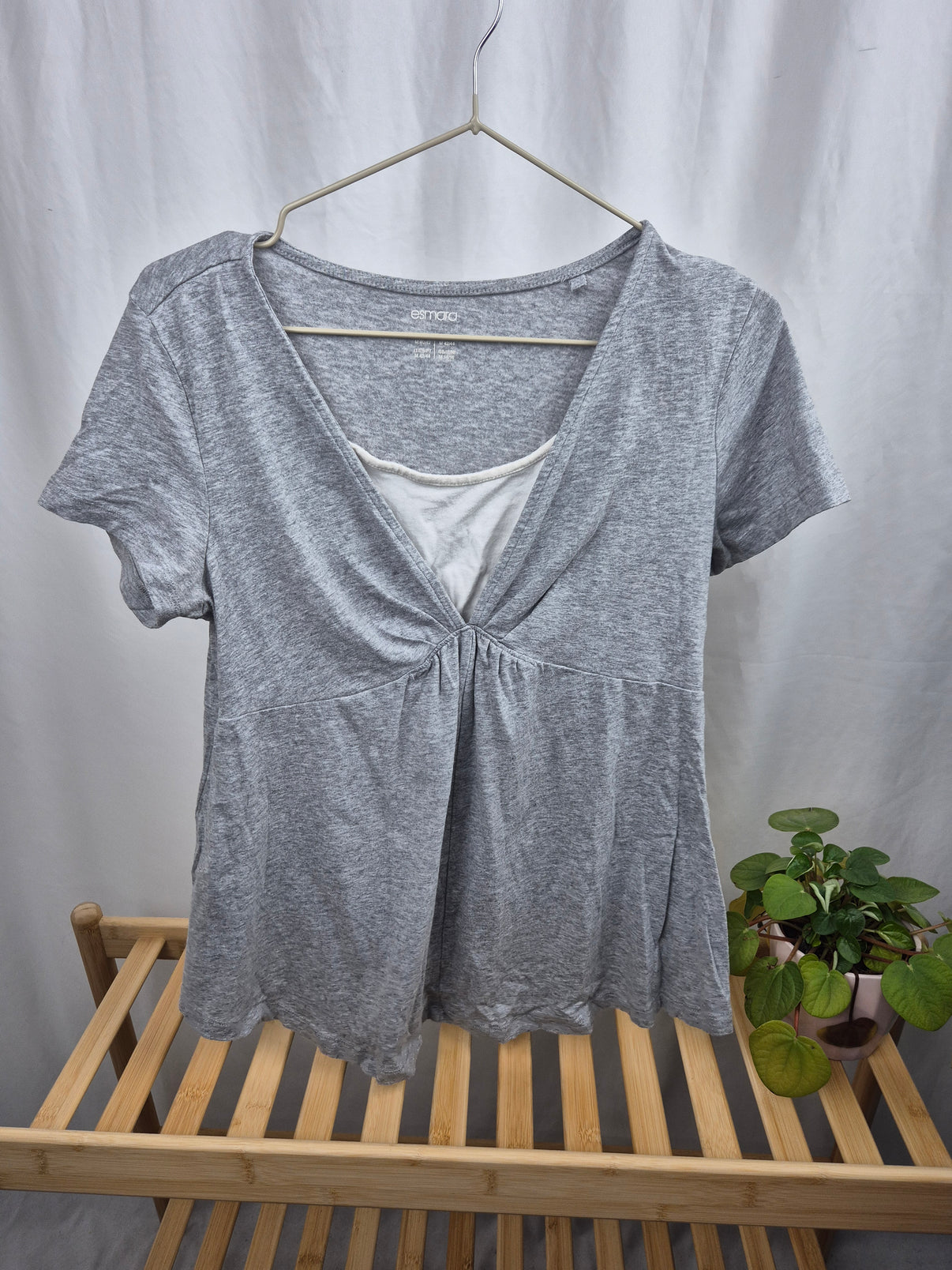 Pohodlné těhotenské a kojicí tričko značky Esmara ve velikosti M (40/42) v univerzální světle šedé barvě. Díky přestřižení pod prsy a všitému topu umožňuje snadný přístup při kojení, zároveň se ale krásně přizpůsobí postavě i v těhotenství. Měkký a pružný materiál je ideální pro každodenní nošení.