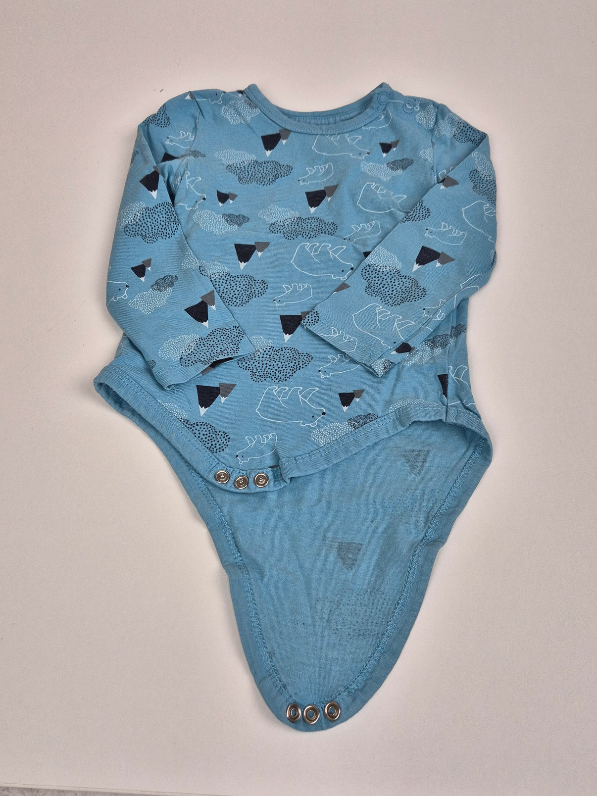 Roztomilé body Pepco s dlouhým rukávem v modré barvě s potiskem hor a medvídků. Vyrobené z měkké bavlny, která je příjemná na nošení a šetrná k dětské pokožce. Zapínání na patentky mezi nožičkami umožňuje snadné přebalování. Praktický kousek do každodenní výbavy miminka.