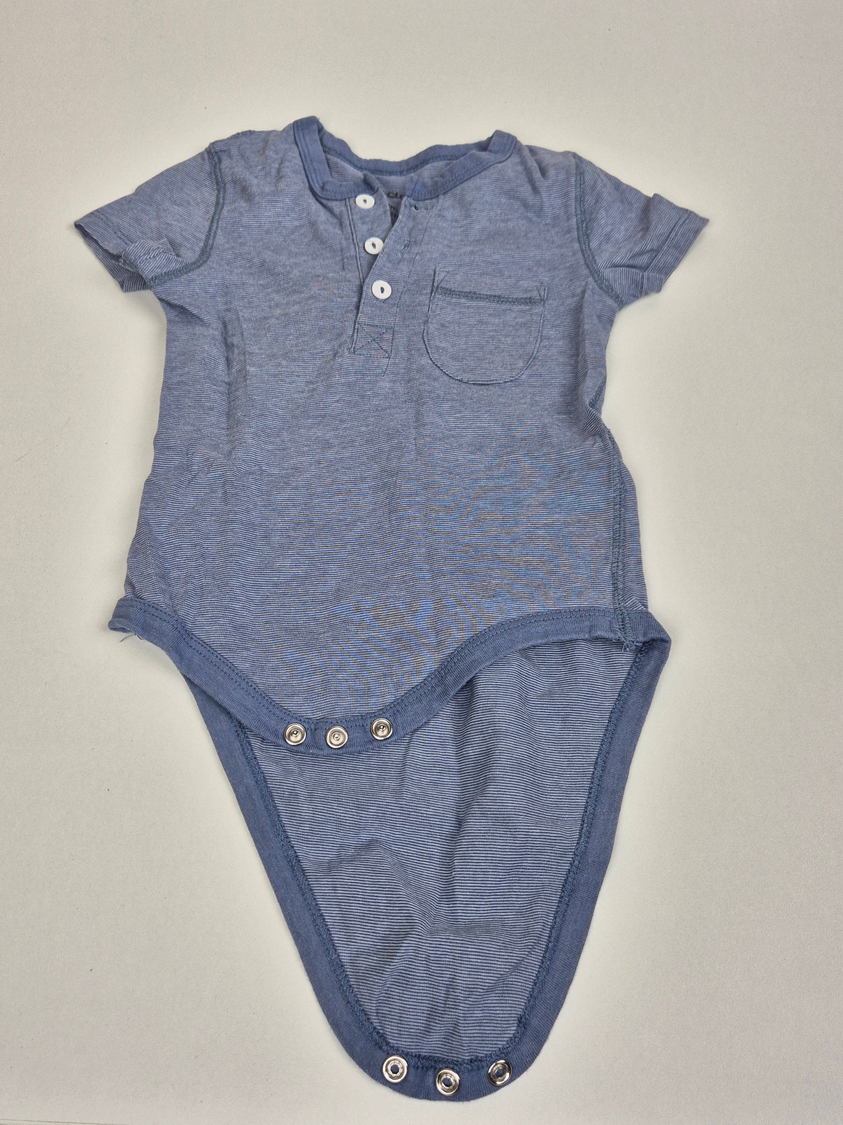 Praktické dětské body značky Pepco v světle modrém odstínu s jemným proužkem. Stylově působí díky krátkému rukávu, knoflíčkům u výstřihu a malé náprsní kapsičce, takže vypadá jako mini tričko, ale zachovává pohodlí body. Vyrobené z měkké, příjemné bavlny, která je ideální pro každodenní nošení. Skvělý kousek pro malé kluky, ať už na doma, do kočárku nebo na procházku.