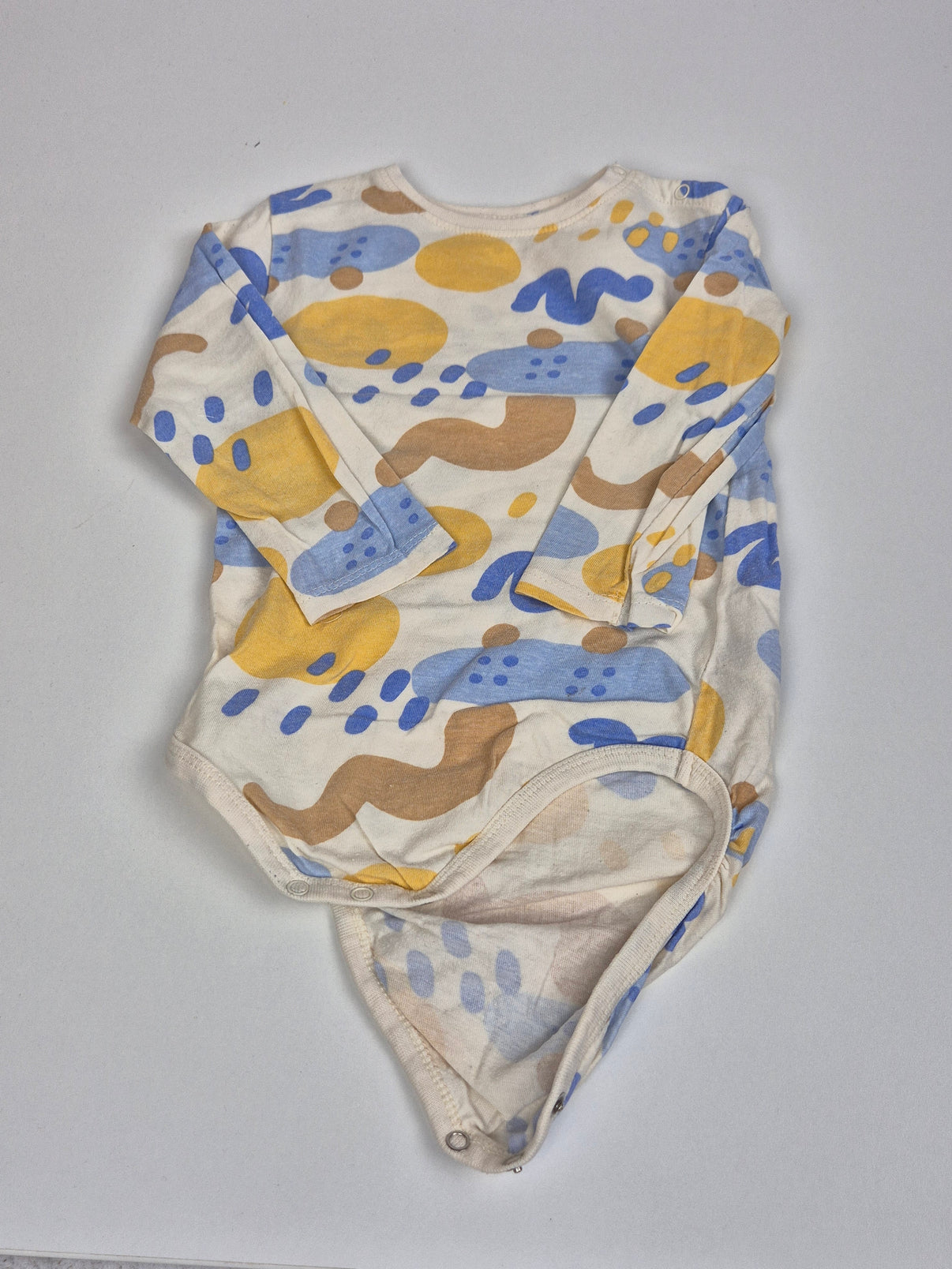 Stylové body Sinsay s dlouhým rukávem zaujme svým veselým abstraktním potiskem v odstínech modré, žluté a hnědé. Je vyrobené z měkké bavlny, takže je příjemné k dětské pokožce. Zapínání na patentky mezi nožičkami usnadňuje přebalování a oblékání.