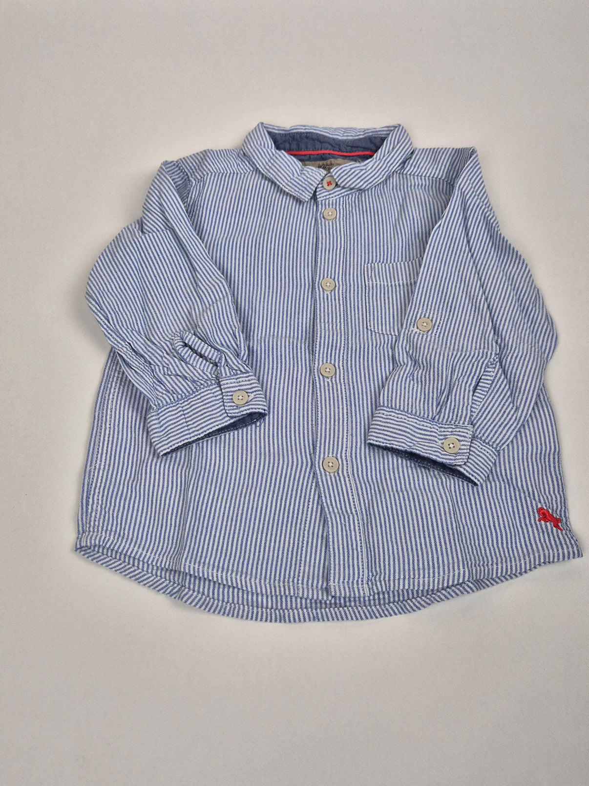 Krásná pruhovaná košile H&M v modro-bílém provedení je ideální na každodenní nošení i slavnostnější příležitosti. Díky příjemné bavlně se pohodlně nosí, a jemné detaily jako náprsní kapsa či červené prošití dodávají elegantní šmrnc. Stylový kousek pro malého chlapečka, který se hodí k džínům i elegantním kalhotám.