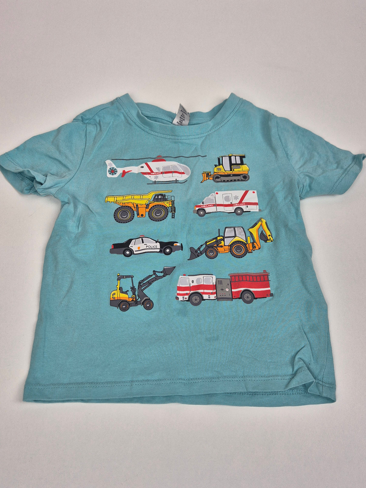 Parádní dětské tričko Dopodopo v světle tyrkysové barvě s potiskem záchranářských a pracovních vozidel – od bagru přes sanitku až po hasičské auto. Vyrobené z měkké, kvalitní bavlny, která je příjemná na nošení. Ideální volba pro malé milovníky aut, strojů a všeho, co má kola! Perfektní do školky, na hřiště i běžné nošení.