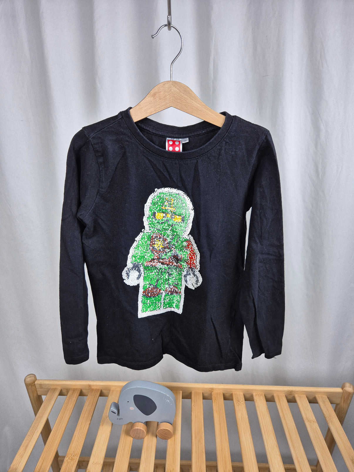 Černé tričko Takko s motivem LEGO zaujme každého malého stavitele! Na přední straně je flitrový potisk postavičky LEGO ninji, který mění barvu při přejetí rukou – zábava i styl v jednom. Tričko má dlouhý rukáv a je vyrobené z příjemné bavlny, takže se skvěle hodí na běžné nošení.