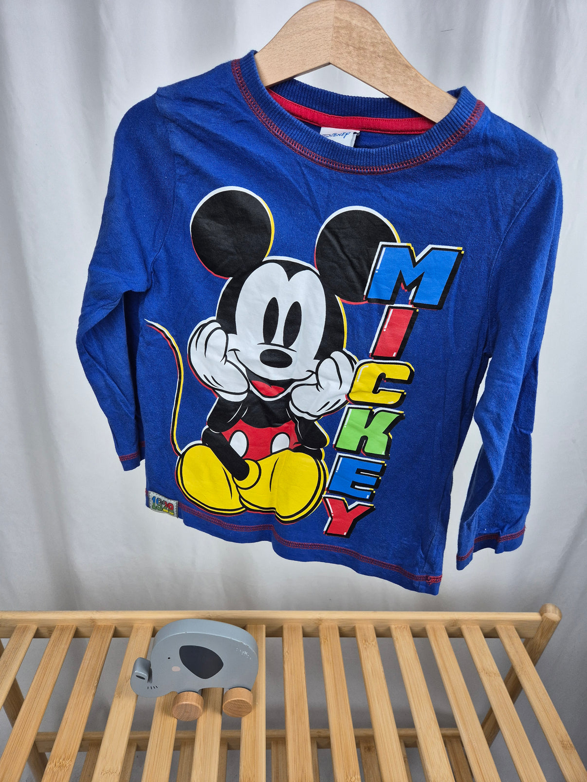 Veselé chlapecké tričko s dlouhým rukávem Mickey Mouse potěší všechny malé fanoušky klasických Disney hrdinů. Tričko je v sytě modré barvě a zdobí ho velký barevný potisk Mickeyho spolu s nápisem MICKEY v pestrých barvách.