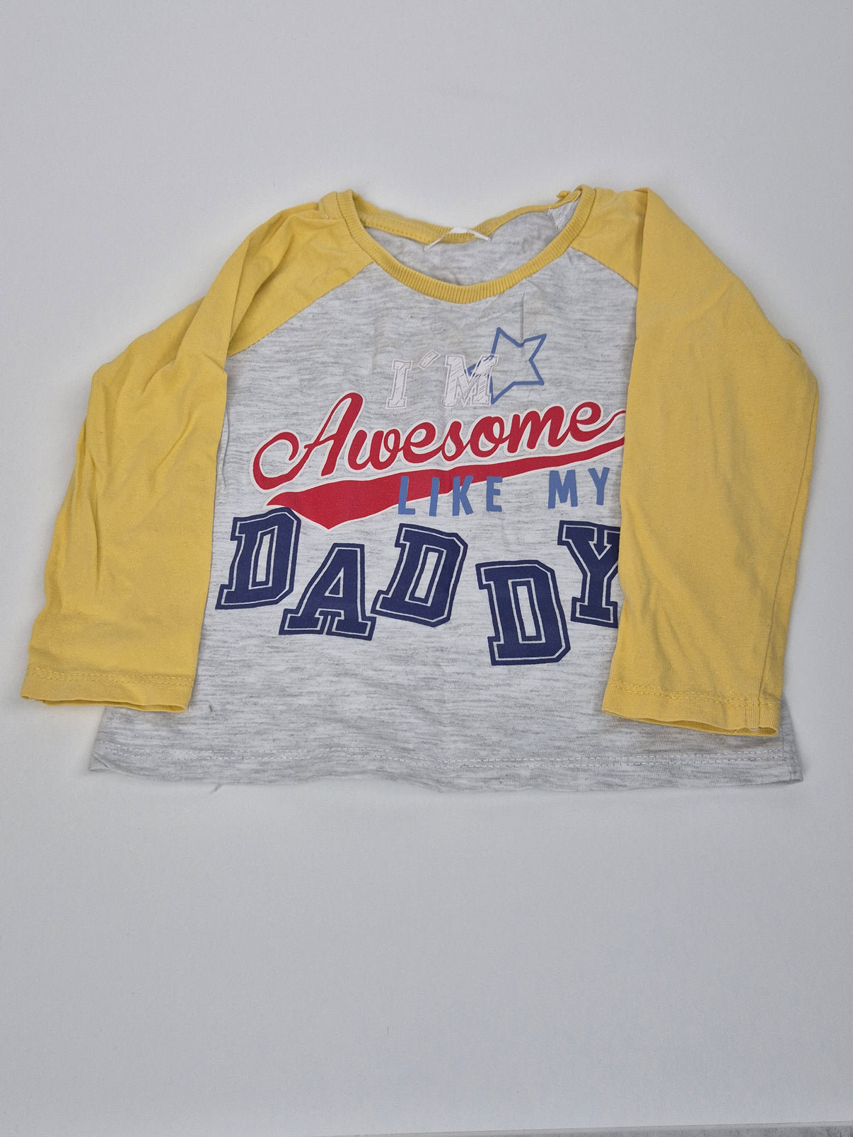 „I’m awesome like my daddy“ – v modro-červeném potisku s hvězdičkou.