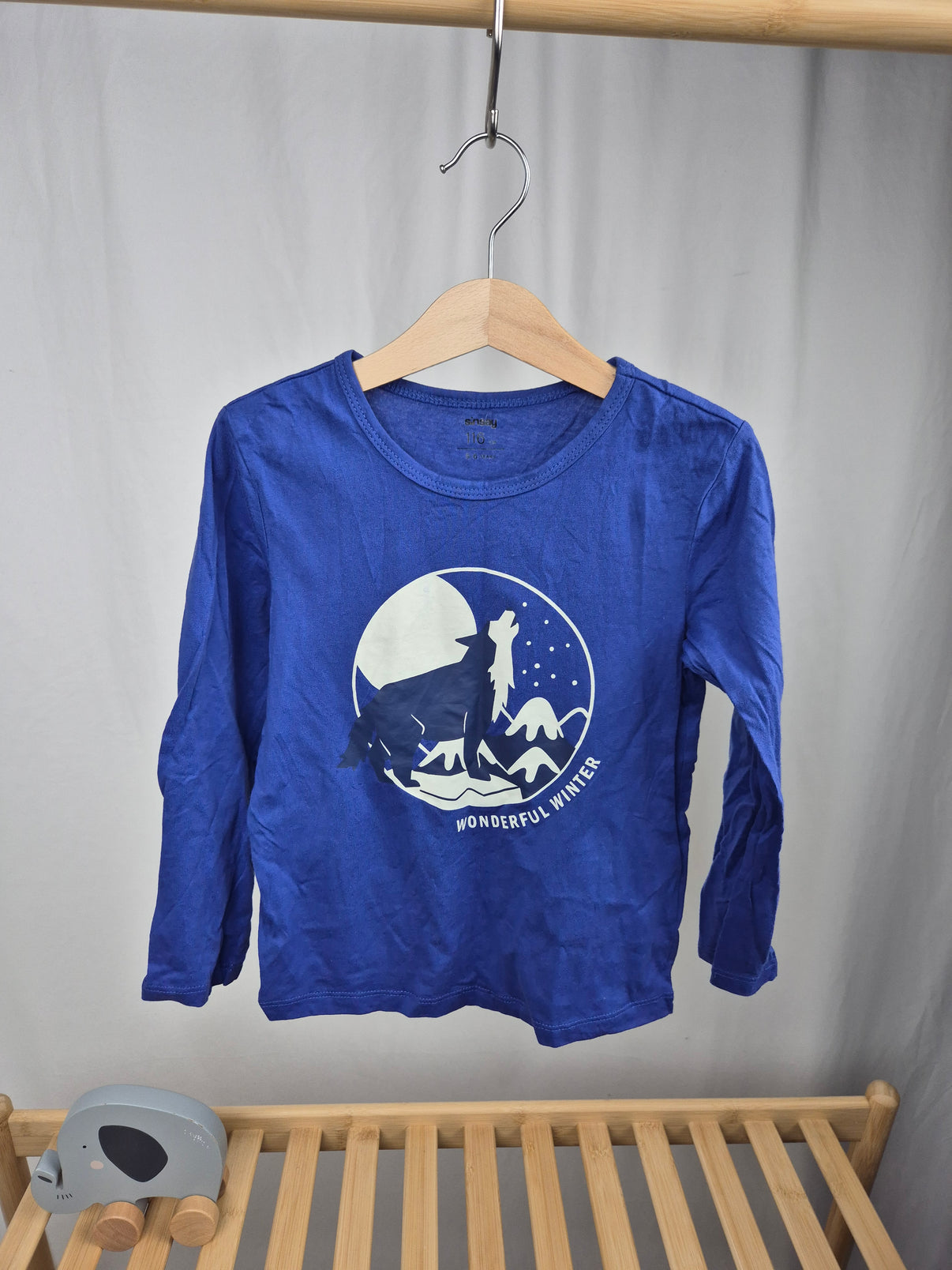 Chlapecké tričko s dlouhým rukávem Sinsay v sytě modré barvě s potiskem vlka na zasněžených horách a nápisem „Wonderful Winter“. Vyrobené z měkké, pohodlné bavlny, vhodné na zimní období i přechodné dny. Ideální do školky, školy nebo na doma – příjemný materiál a jednoduchý, přesto výrazný design.