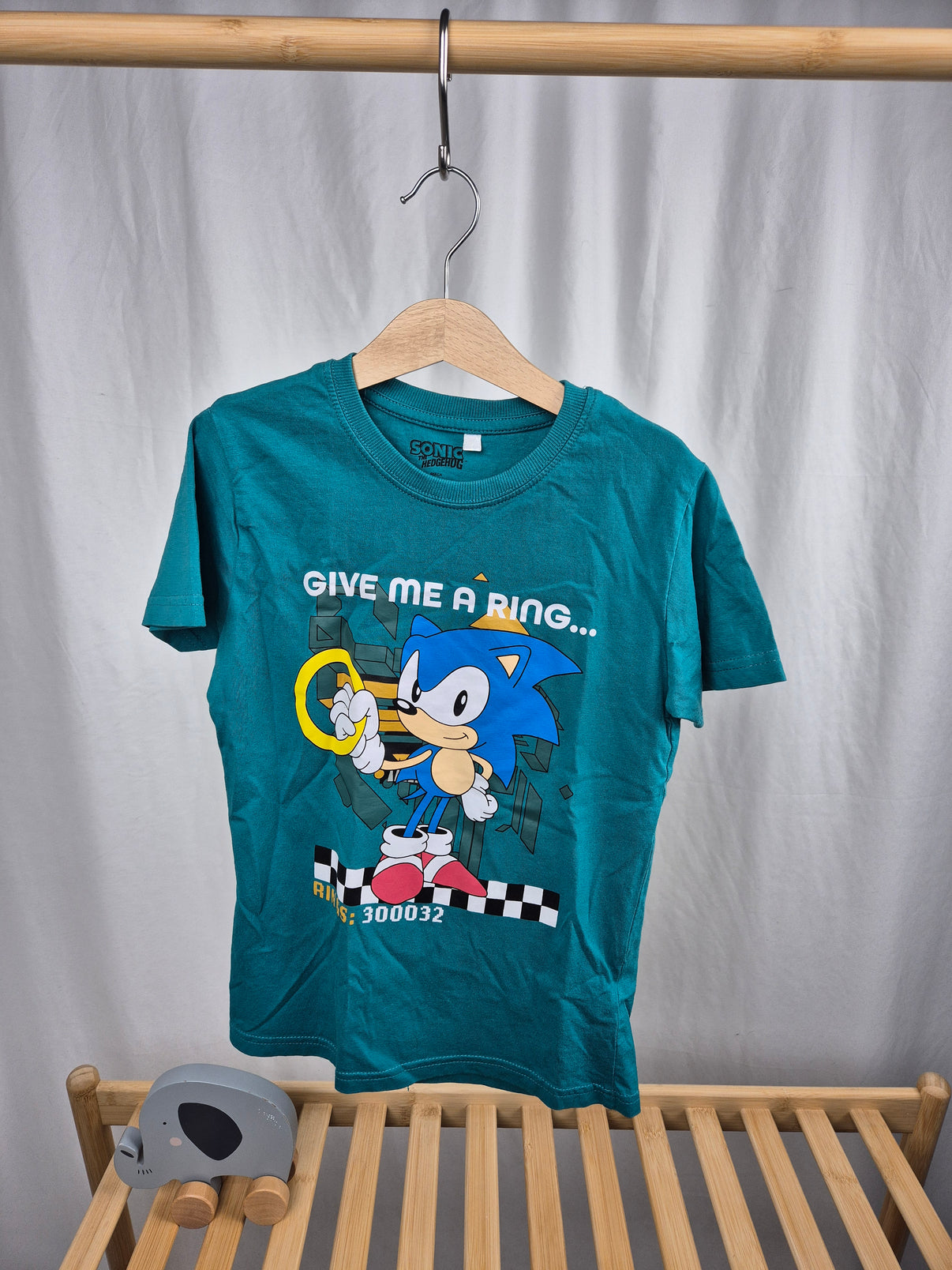 Licencované chlapecké tričko Sonic the Hedgehog od značky E plus M. Tyrkysové tričko s krátkým rukávem a výrazným potiskem populární postavičky Sonica s nápisem „GIVE ME A RING…“ a motivem prstenu 💍. Vyrobeno z kvalitní bavlny, pohodlné na běžné nošení.