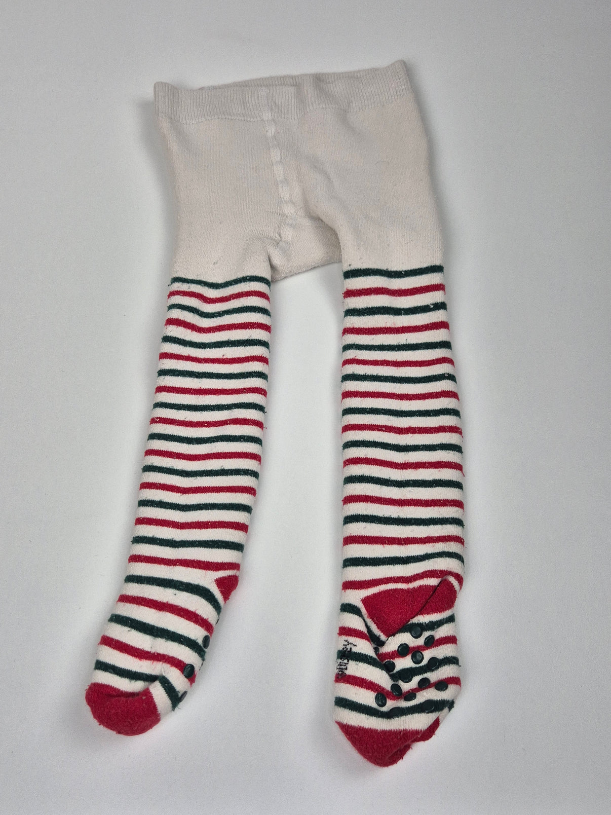 Veselé dětské punčocháče s vánočním motivem Disney. Bílé s červeno-zelenými proužky, na zadečku zdobené obrázkem kačera v santovské čepici a nápisem Merry Christmas. Vyrobené z příjemného, pružného materiálu, který se pohodlně nosí a hezky přiléhá.