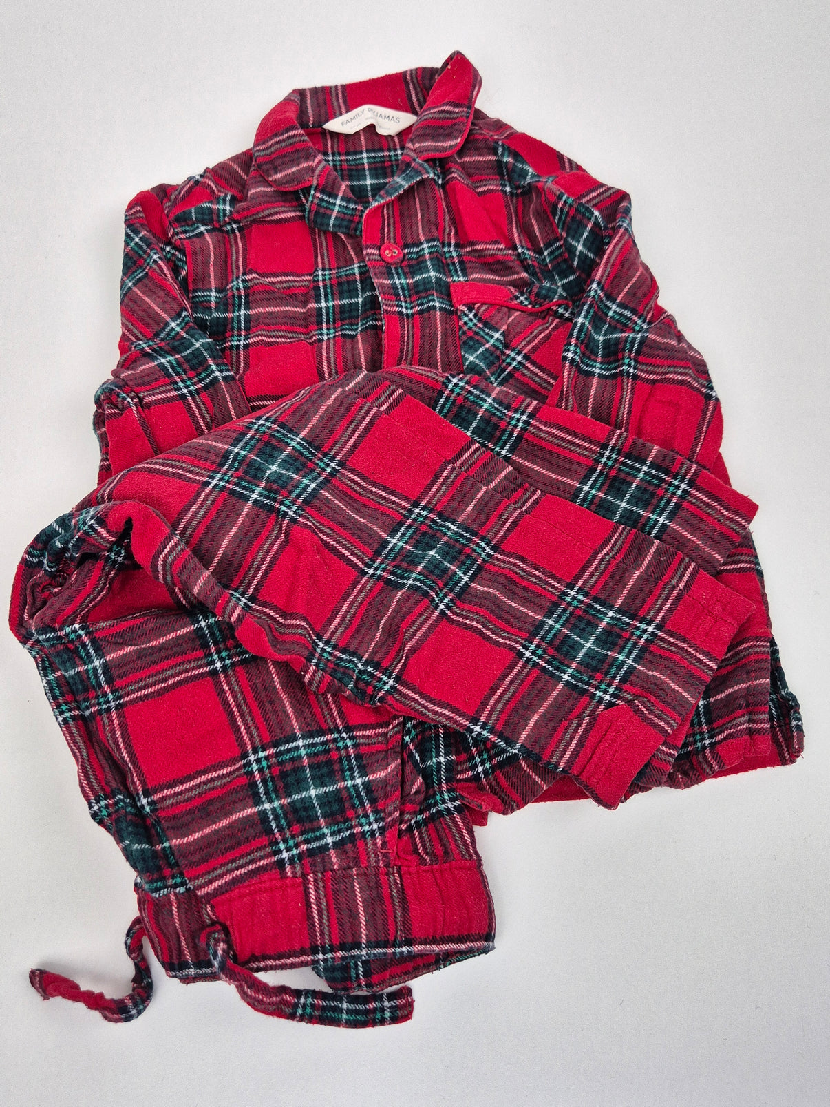 Heboučké flanelové vánoční pyžamo Marks & Spencer v klasickém červeném tartanovém vzoru navodí tu pravou sváteční atmosféru. Dvoudílná sada obsahuje košili s límečkem, knoflíčky a náprsní kapsičkou a pohodlné kalhoty se stažitelným pasem. Ideální volba na zimní večery, rodinné focení i vánoční pohodu u pohádek.