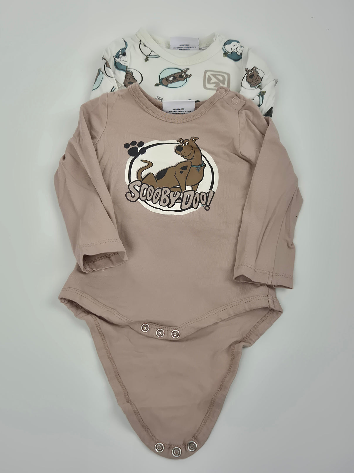 Sada 2 body s motivem Scooby-Doo ve velikosti 62 potěší každého malého fanouška tohoto animovaného hrdiny. První body v jemně hnědé barvě zdobí velký potisk Scoobyho s logem Scooby-Doo!, druhý kousek má světlý základ a celoplošný potisk postavičky Scoobyho v různých vtipných pózách. Oboje body mají dlouhý rukáv, příjemný bavlněný materiál a praktické zapínání na rameni a mezi nožičkami. Ideální volba na každý den – pro chlapečky.