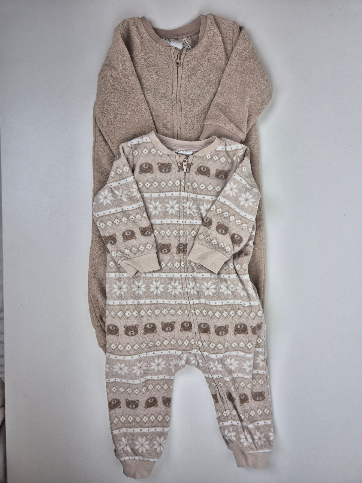 Hřejivá sada dvou fleecových overalů v jemných béžových tónech je ideální na chladnější dny. Jeden overal je jednobarevný, druhý zdobený zimním vzorem s medvídky a vločkami. Oba kousky mají praktický zip po celé délce, který usnadní oblékání i přebalování. Měkoučký materiál zajistí pohodlí doma i na procházkách. Vhodné pro holčičky i chlapečky. Značka H&M.