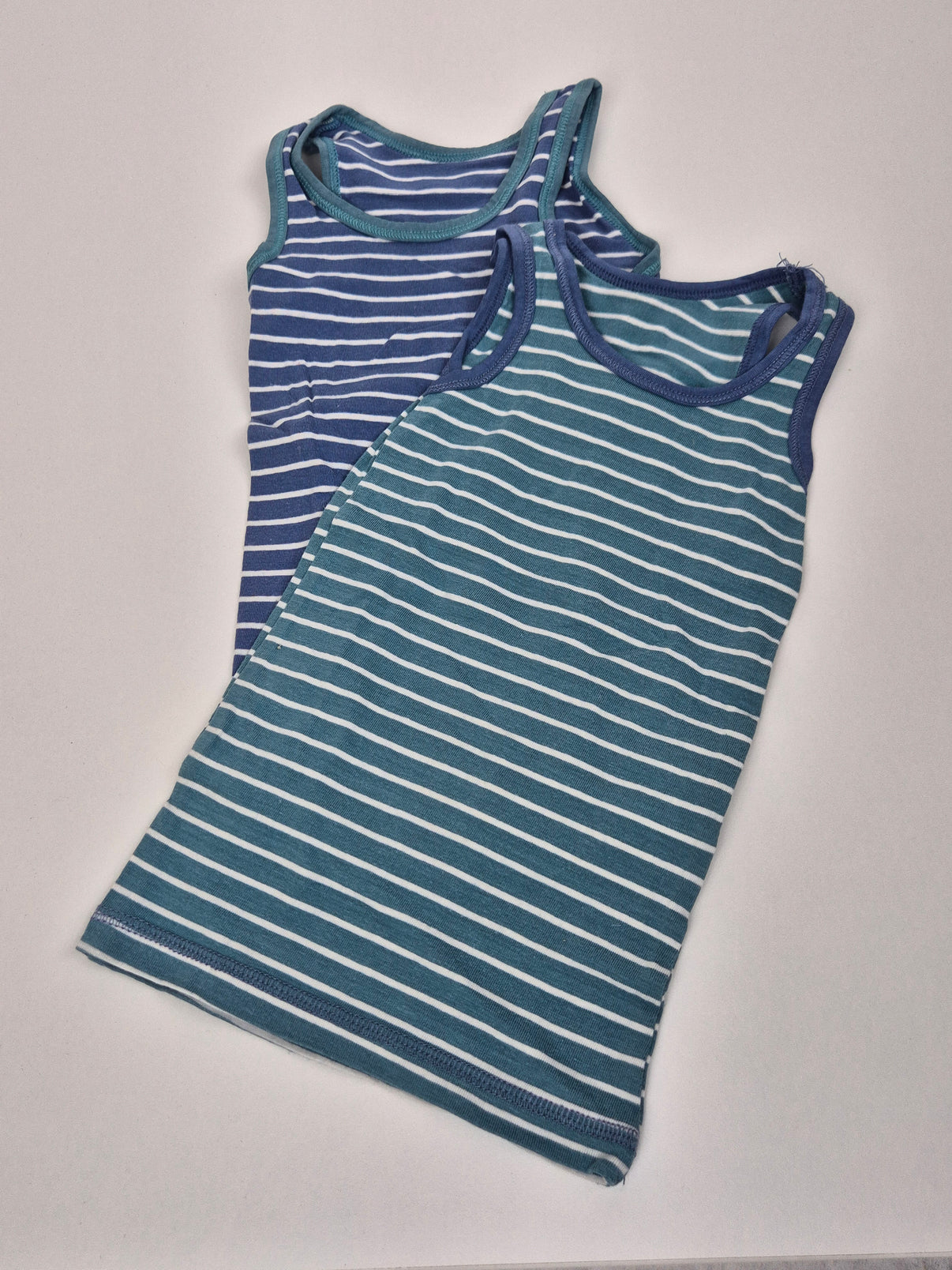 Sada dvou pruhovaných bavlněných tílek Kiki&Koko. Příjemný a pružný materiál zaručí pohodlí po celý den. Skvěle se hodí na léto nebo jako spodní vrstva pod mikinu či tričko. Klasický střih a nadčasový námořnický design.