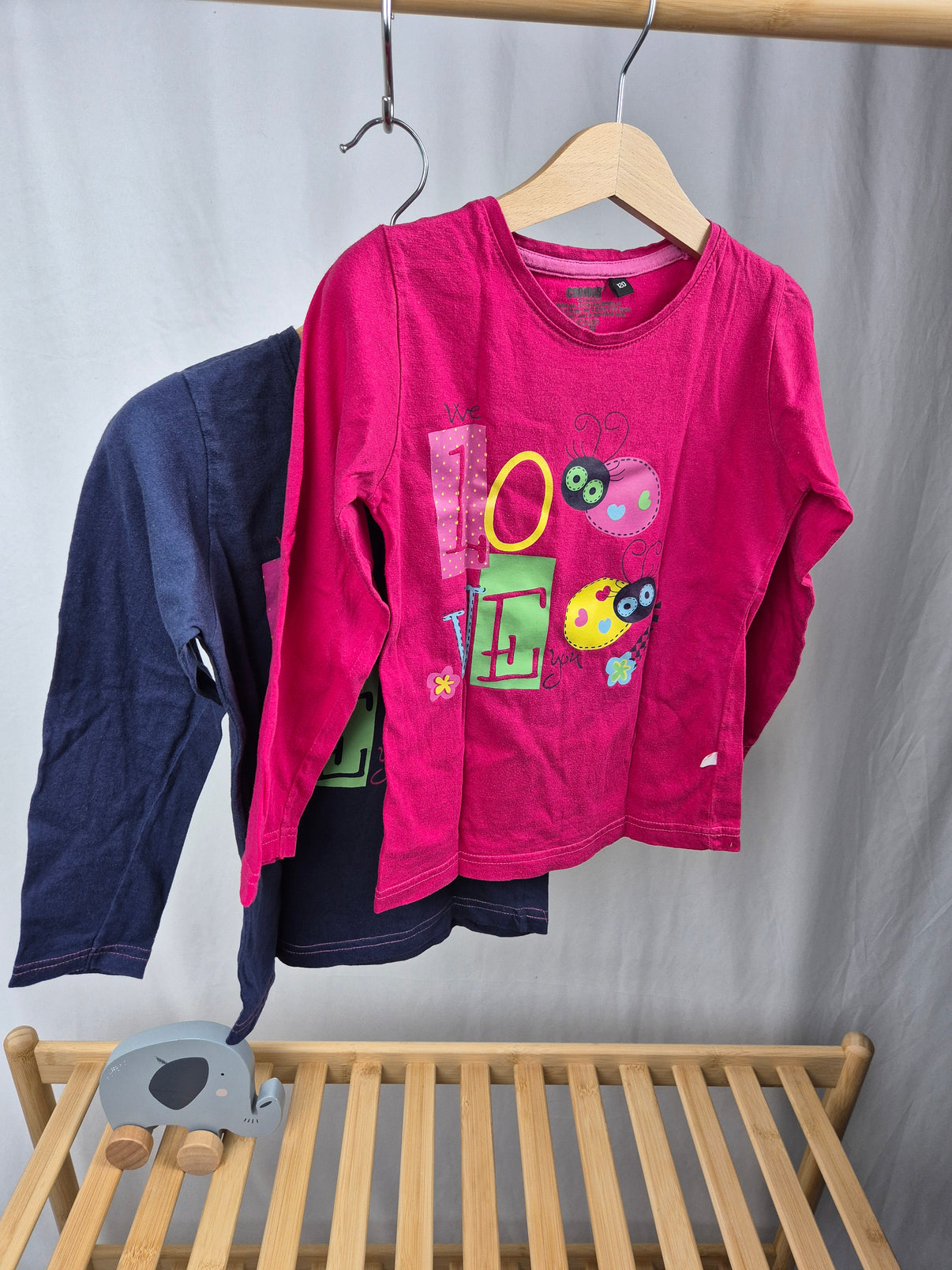 Sada dvou dívčích triček značky Coonoor ve velikosti 120 je veselým a praktickým doplňkem do šatníku. Trička s dlouhým rukávem zdobí barevný potisk písmen skládajících slovo "LOVE" a roztomilých berušek....