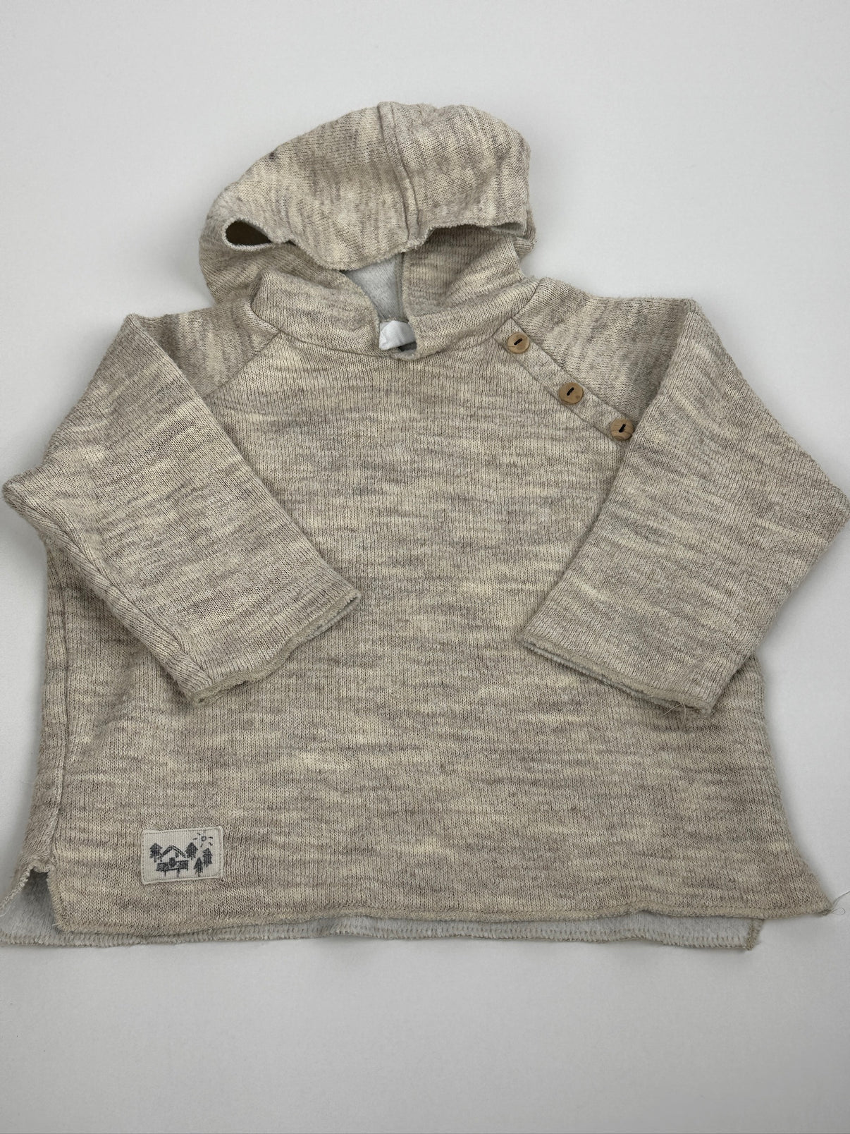 Pohodlný a stylový svetřík Zara ve velikosti 86 je ideální volbou do chladnějších dnů. Světle béžová melírovaná barva působí přírodně a neutrálně, takže se hodí pro holčičky i chlapečky. Svetřík má praktickou kapuci a zapínání na tři dřevěné knoflíčky na rameni, které usnadňuje oblékání. Měkký pletený materiál je příjemný na dotek a zahřeje při každodenním nošení i venkovních procházkách. Skvělý kousek do šatníku každého malého dobrodruha.