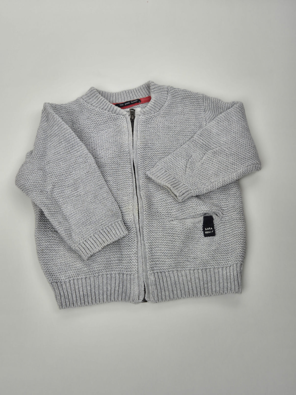 Šedý pletený svetr ZARA Knit ve velikosti 86 je ideální volbou pro chladnější dny. Je vyroben z měkkého, hřejivého materiálu, který je příjemný na dotek i nošení. Svetr má jednoduchý, ale elegantní design se zapínáním na zip a praktickými kapsami vpředu. Díky neutrální barvě se snadno kombinuje s dalšími kousky dětského šatníku. Perfektní pro každodenní nošení i slavnostnější příležitosti.