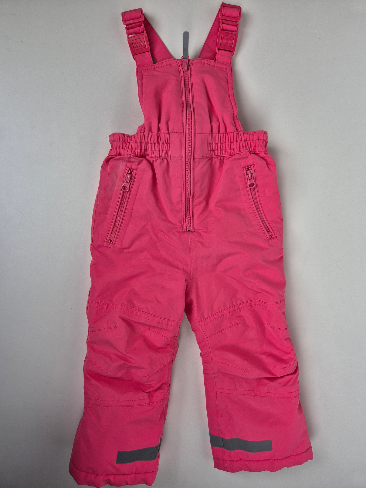 Zateplené kalhoty F&F v sytě růžové barvě jsou ideální na zimní radovánky. Díky nepromokavému materiálu a hřejivé podšívce udrží malou dobrodružku v teple a suchu i při delším pobytu venku. Praktické kšandy s nastavitelnou délkou, reflexní prvky a zipové kapsy zaručují pohodlí i bezpečnost. Skvělý kousek pro holčičku na sníh i zimní výlety.