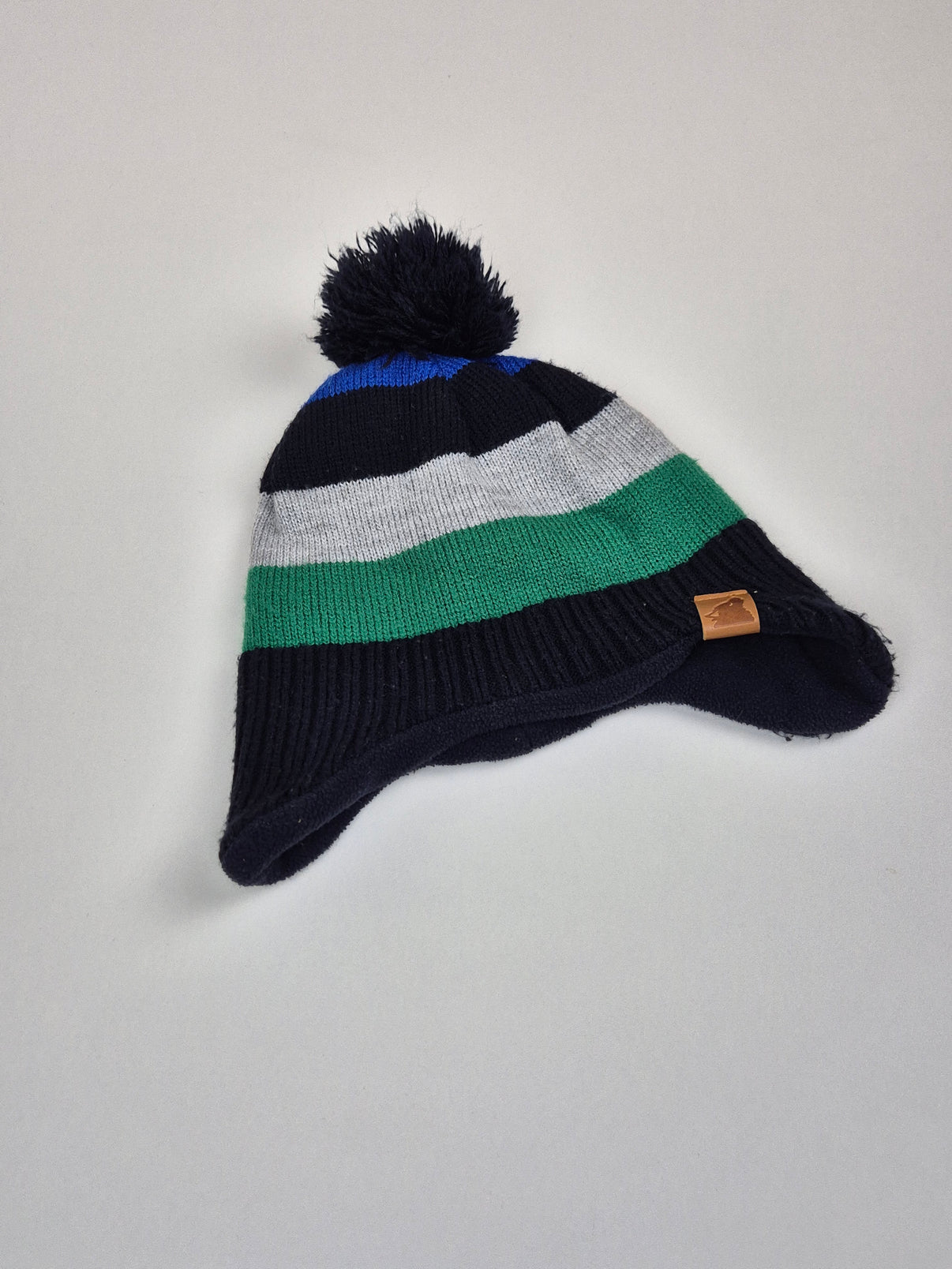Zimní pletená čepice Sinsay s hravou bambulí a proužkovaným designem v kombinaci černé, zelené, šedé a modré. Barevné ladění působí sportovně a svěže, ideální pro malé dobrodruhy. Čepice má prodloužené krytí oušek a hřejivou vnitřní vrstvu, která dobře ochrání před chladem. Praktický střih zajistí, že čepice dobře drží na hlavě při každodenním nošení venku.