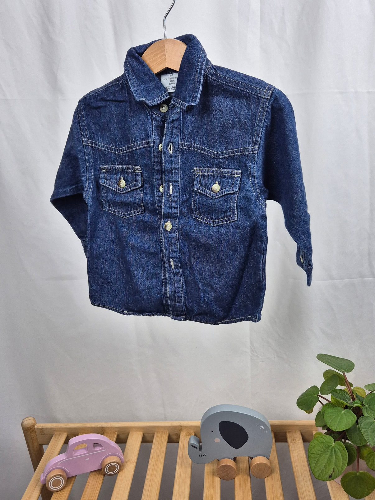 Stylová dětská džínová košile v tmavě modrém denimu s klasickým límečkem a zapínáním na knoflíky. Dvě náprsní kapsy s klopami dodávají košili tradiční vzhled. Měkký a pohodlný materiál zajišťuje příjemné nošení po celý den. Skvělý kousek, který lze nosit jako samostatnou košili nebo jako lehkou vrstvu přes tričko.