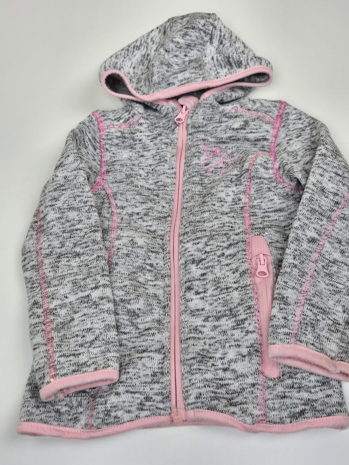 Měkoučká mikina Kiki&Koko v melírované šedo-bílé s růžovými detaily, skvělá na outdoorové výpravy, do školky i na hřiště. Materiál je příjemný, hřejivý a díky jemnému počesu zevnitř krásně drží teplo. Praktická kapuce, celopropínací zip a kapsa na zip z ní dělají pohodlný a funkční kousek. Růžové prošití a lemování dodávají mikině hezky holčičí vzhled.