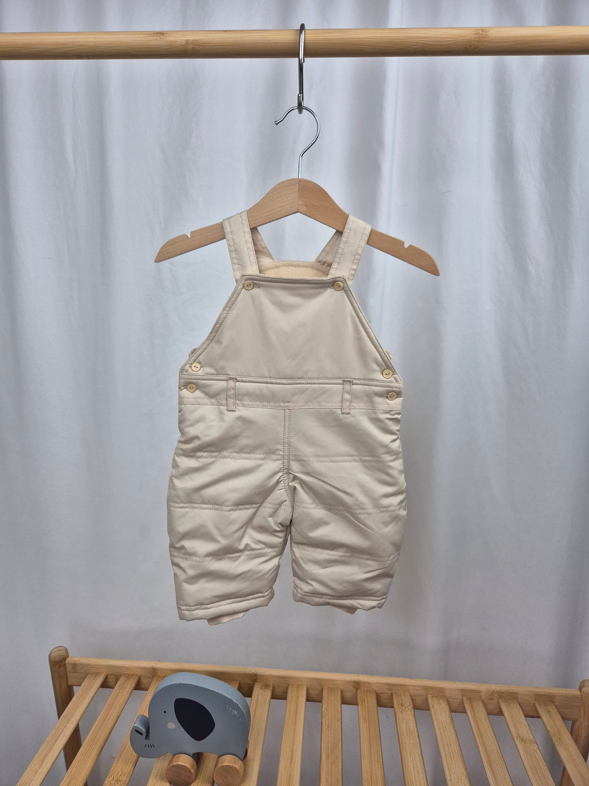 Heboučké zateplené laclové kalhoty v jemném krémově-béžovém odstínu, ideální do chladnějších dnů. Díky měkkému zateplení udrží miminko krásně v teple, ramínka na patentky usnadní oblékání a pohodlný střih dovolí volný...