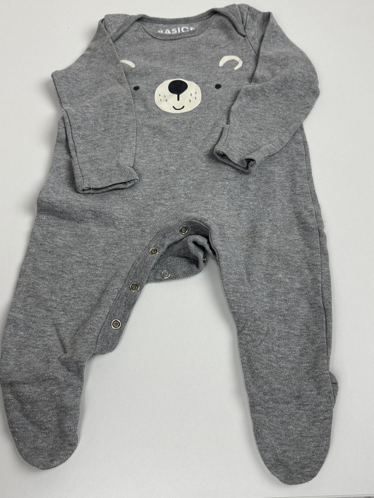 Dupačky značky F&F ve velikosti 68. Šedé provedení s roztomilým motivem medvídka na hrudi. Praktické zapínání na patentky vede od rozkroku až po nohavice, což usnadňuje oblékání i přebalování.