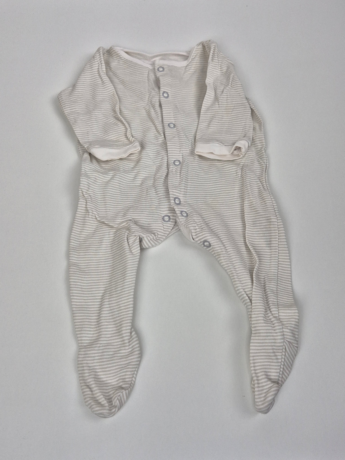 Pohodlné bavlněné dupačky George ve velikosti 62/68 v jemném krémovém odstínu s decentními proužky. Díky celopropínacím patentkům po celé délce se snadno oblékají i svlékají. Měkký materiál je příjemný k dětské pokožce a uzavřené nožičky udržují miminko v teple. Ideální volba na spaní i pohodové dny doma.