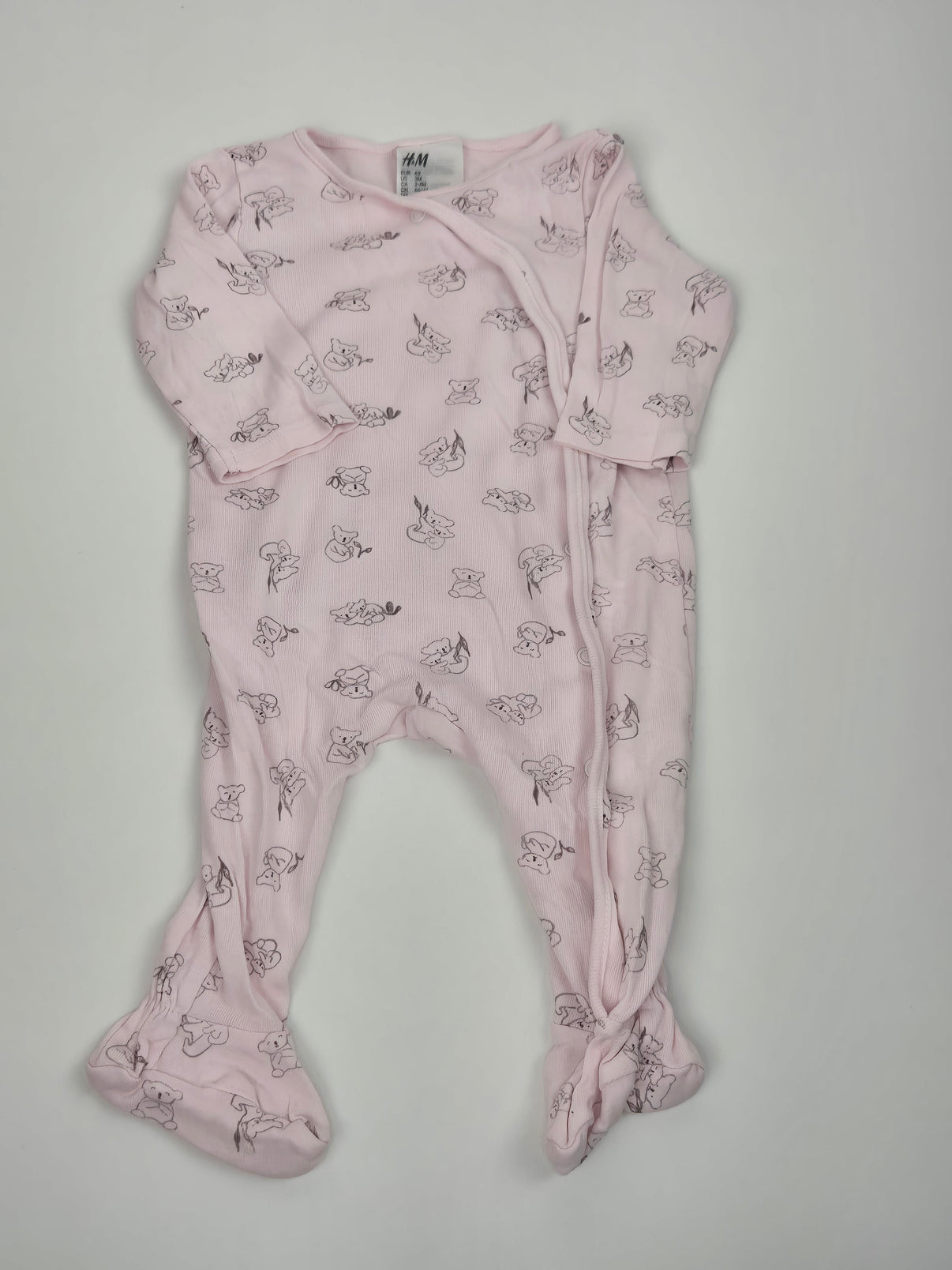 Růžové dupačky značky H&M ve velikosti 62.Jsou z jemné žebrované bavlny, s celoplošným potiskem roztomilých medvídků v tmavě šedé barvě. Mají praktické zapínání na zip, které vede šikmo od krku...
