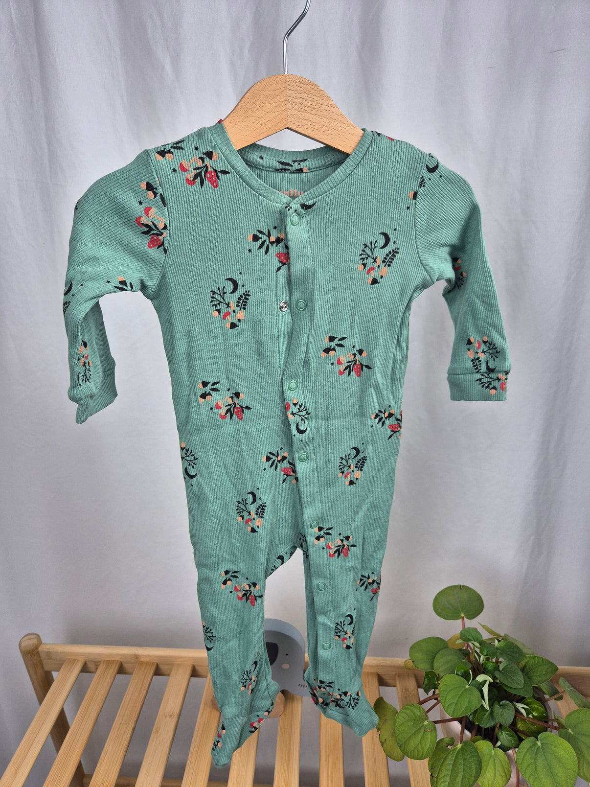 Měkoučké žebrované dupačky od značky Lupilu v jemně zelené barvě s roztomilým květinovým vzorem jsou skvělým kouskem na spaní i na lenošení doma. Celopropínací zapínání na patentky usnadní oblékání a přebalování, zatímco příjemný materiál zajistí pohodlí po celý den i noc. Ideální volba pro holčičku.