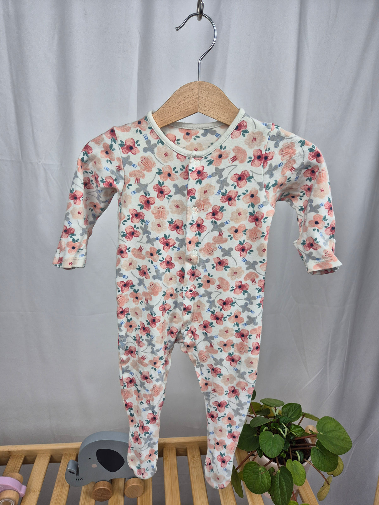 Roztomilé dupačky značky Marks & Spencer v jemně smetanové barvě s celoplošným květinovým vzorem v odstínech růžové, lososové a šedé jsou ideální volbou pro malé princezny. Díky zapínání na patentky po celé délce se snadno oblékají i přebalují. Měkký bavlněný materiál zajišťuje maximální pohodlí po celý den i noc – ideální na spaní, ale i na hraní doma. Květinový motiv působí jemně a elegantně, skvěle se hodí i jako milý dárek.