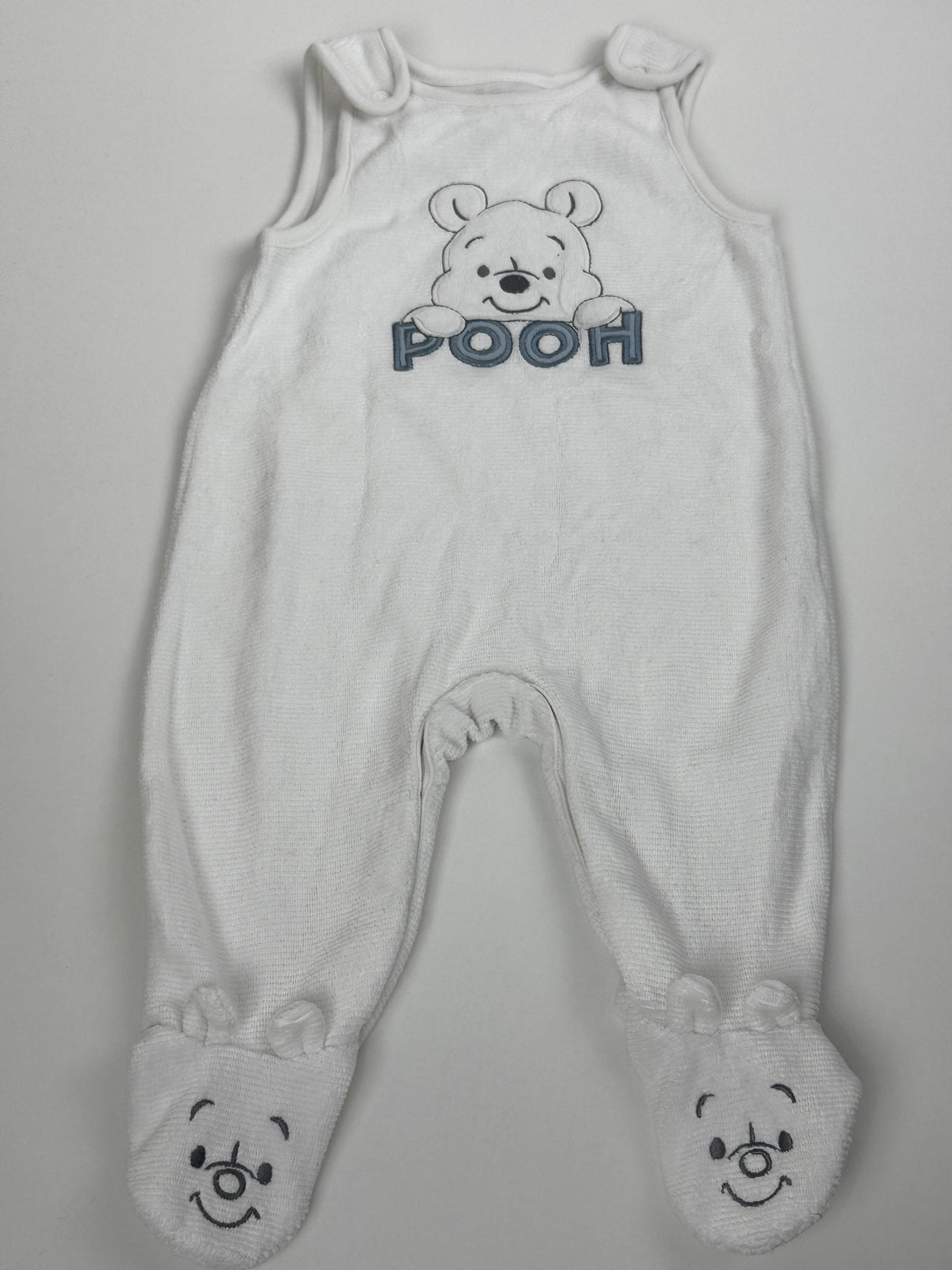 Roztomilé dupačky s Medvídkem Pú od značky C&A ve velikosti 68 zaujmou svým jemně bílým provedením a výšivkou oblíbené pohádkové postavičky. Nápis „Pooh“ na hrudníku a usměvavé obličeje Pú na chodidlech dodávají dupačkám hravý a něžný vzhled. Zapínání na ramínkách usnadňuje oblékání a měkký materiál poskytuje pohodlí pro každodenní nošení i klidný spánek. Perfektní volba pro kluky, ale díky neutrální barvě i jako unisex kousek.