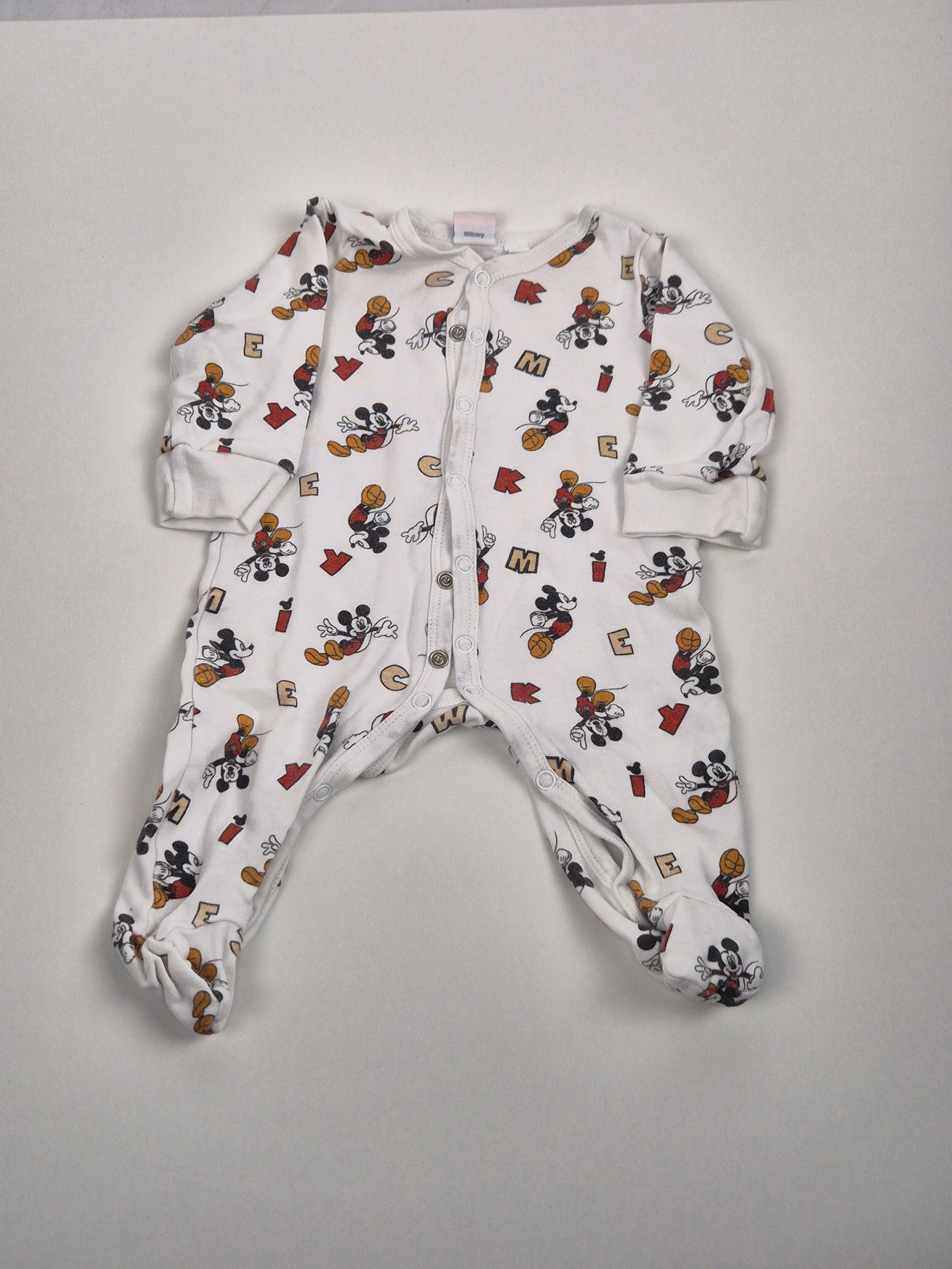 Veselé kojenecké dupačky značky Pepco s celoplošným potiskem oblíbené postavičky Mickey Mouse v hravých barvách – červené, žluté a černé. Bílé pozadí s barevnými detaily a motivy basketbalových míčů dodává dupačkám sportovní a zábavný vzhled. Praktické zapínání na patentky po celé délce umožňuje snadné oblékání a přebalování.