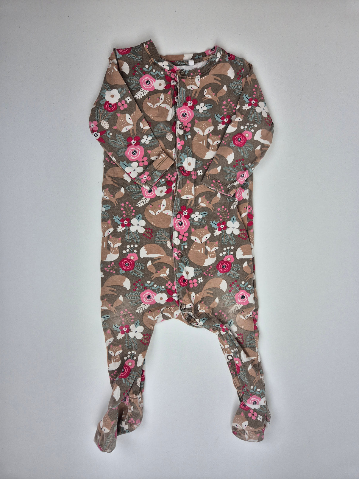 Originální dívčí dupačky značky Name It ve velikosti 74 s okouzlujícím potiskem lišek a květin v odstínech růžové, bílé a zelené na hnědém podkladu. Overal má praktické zapínání na druky po celé délce i mezi nožičkami, což usnadňuje převlékání i přebalování. Zakončení s nožičkami udrží miminko pěkně v teple. Měkký materiál zaručí pohodlí při spánku i celodenním nošení. Stylový kousek pro malé milovnice přírody.